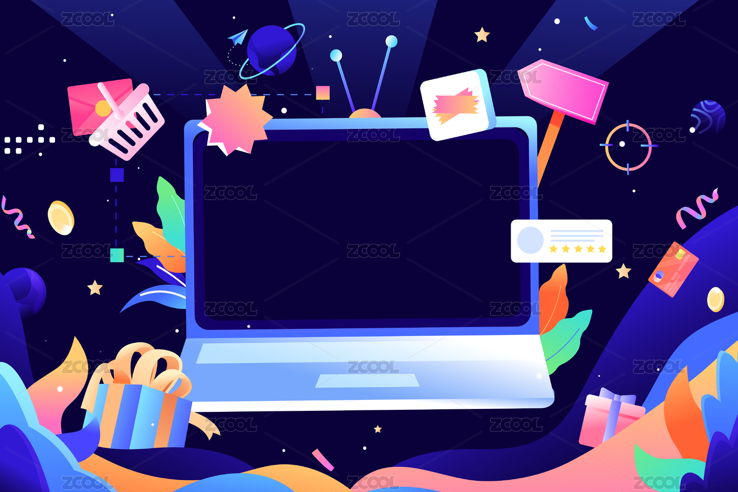 电商促销背景矢量插画