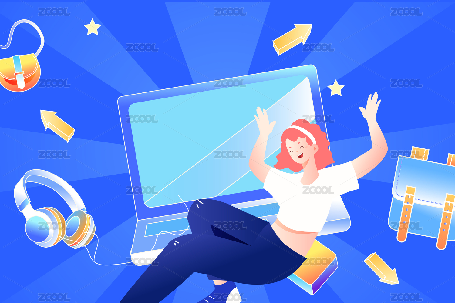电商娱乐人物矢量插画