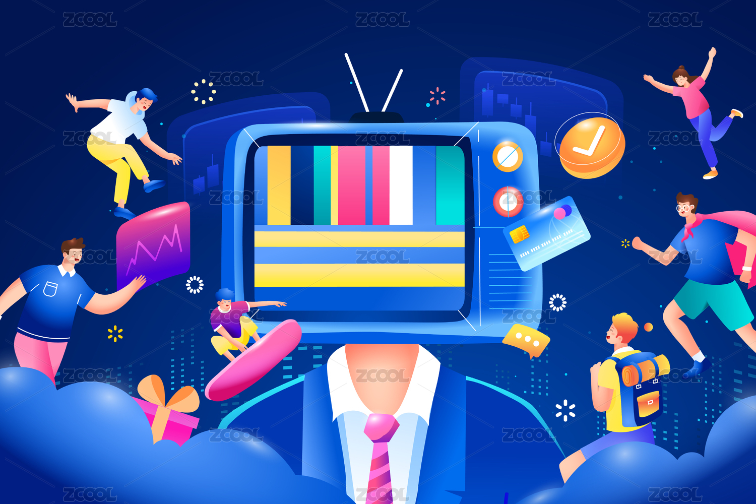 电商娱乐人物矢量插画
