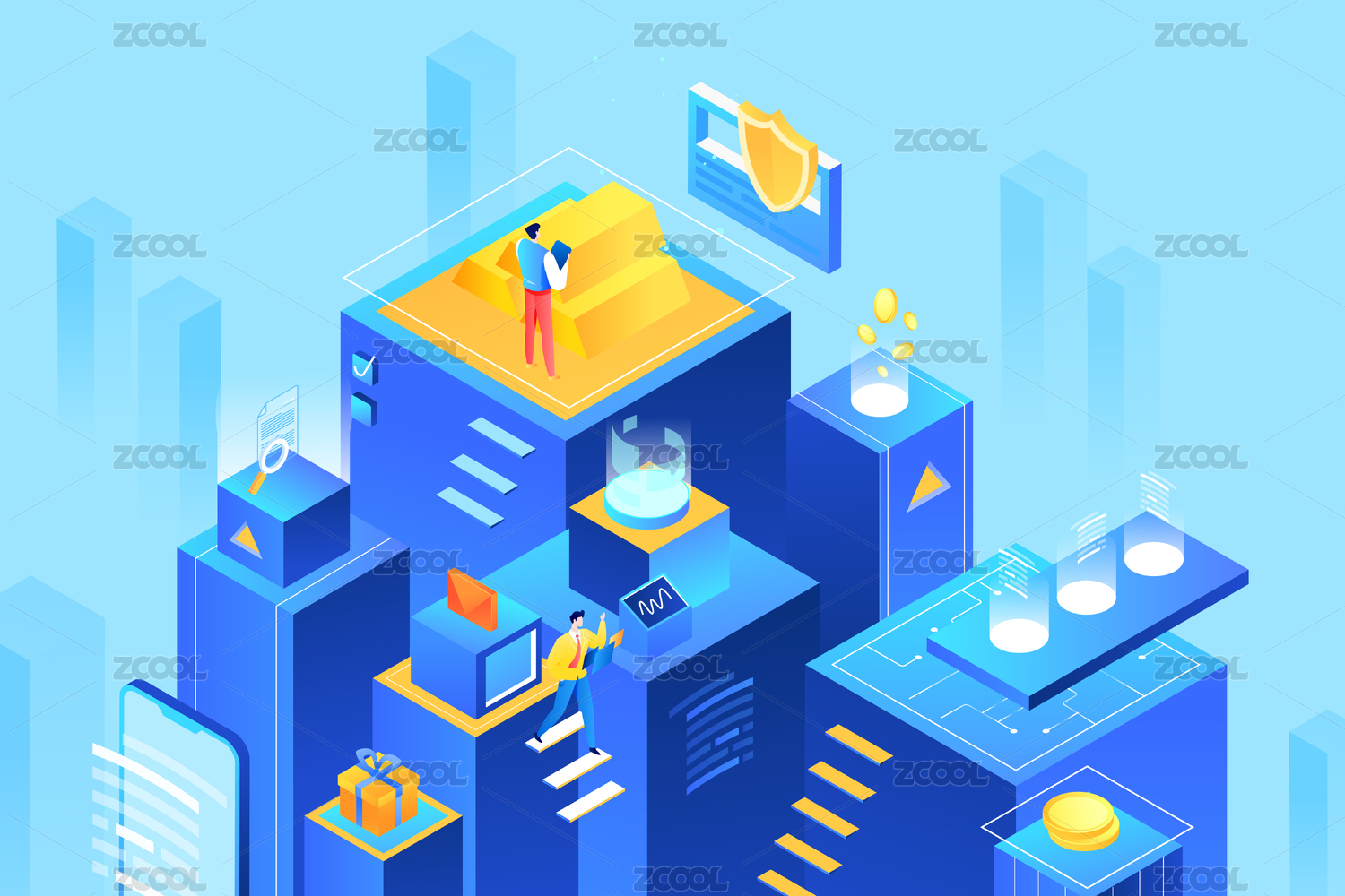 2.5D等距互联网金融活动矢量插画