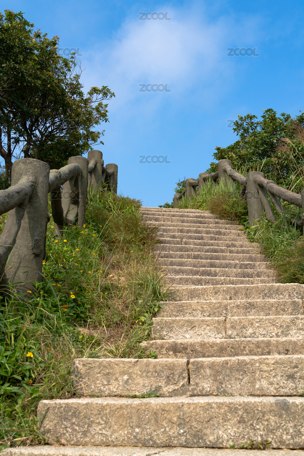 中国深圳梧桐山,蓝天下的登山石阶长廊