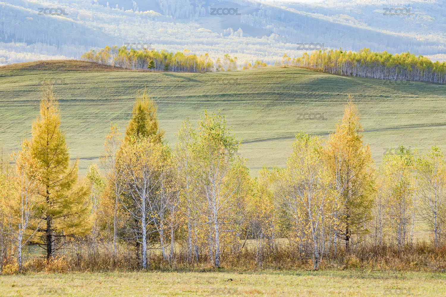 内蒙秋天多彩的山丘森林