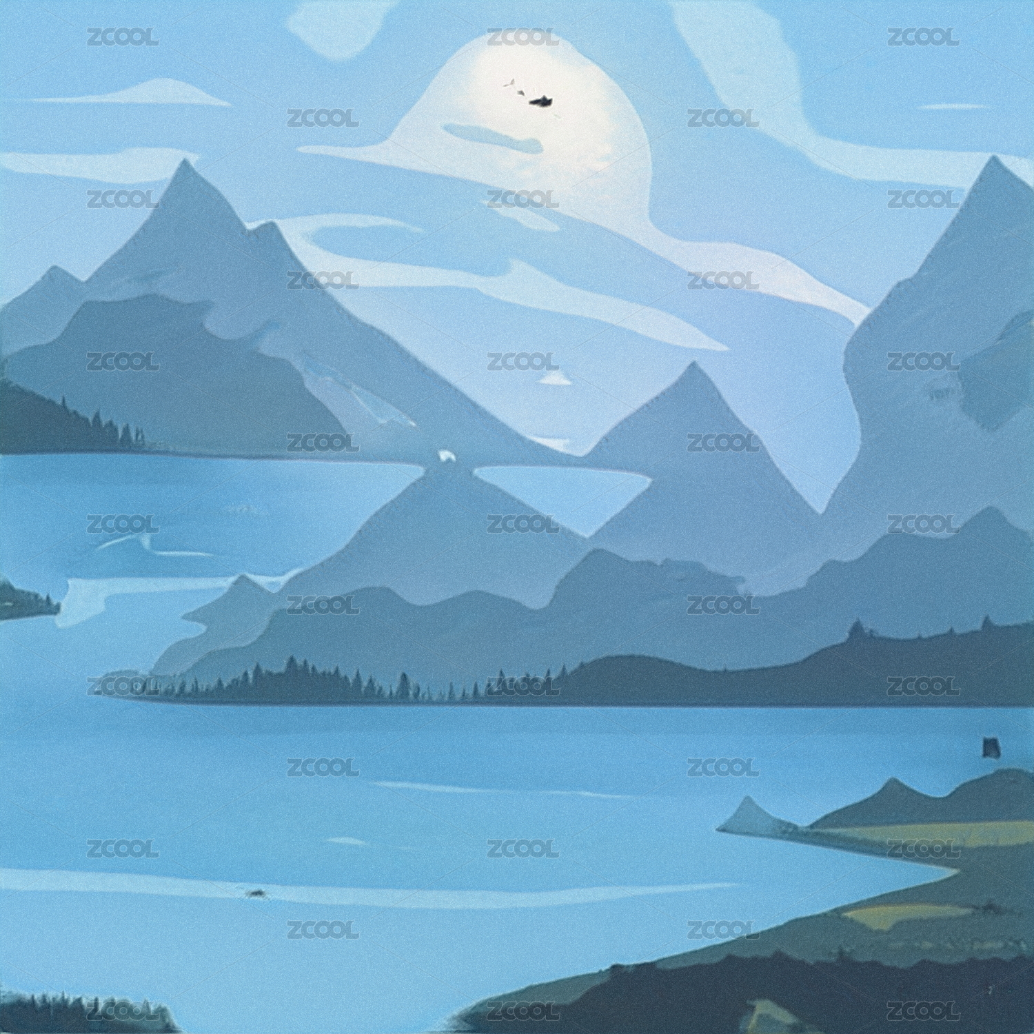 插画,风光,自然,天空,山脉,河流,河,大海,海洋,山丘