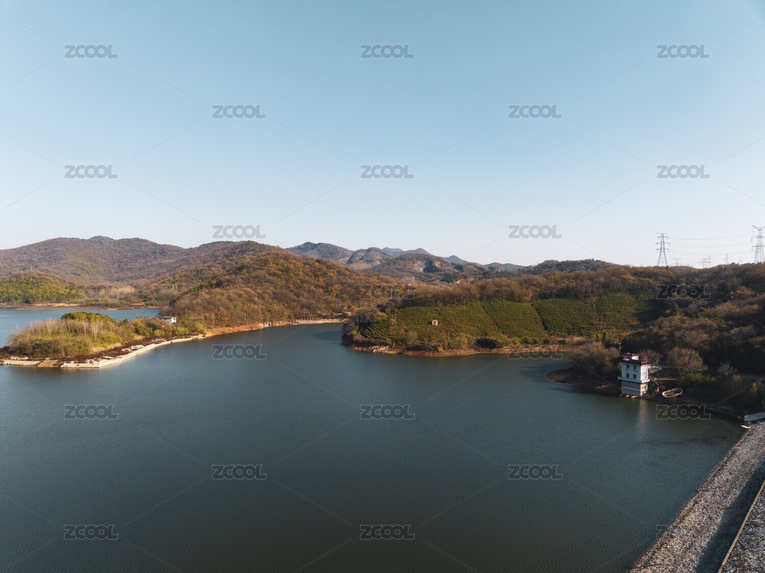 水坝形成的水库湖泊和群山小岛