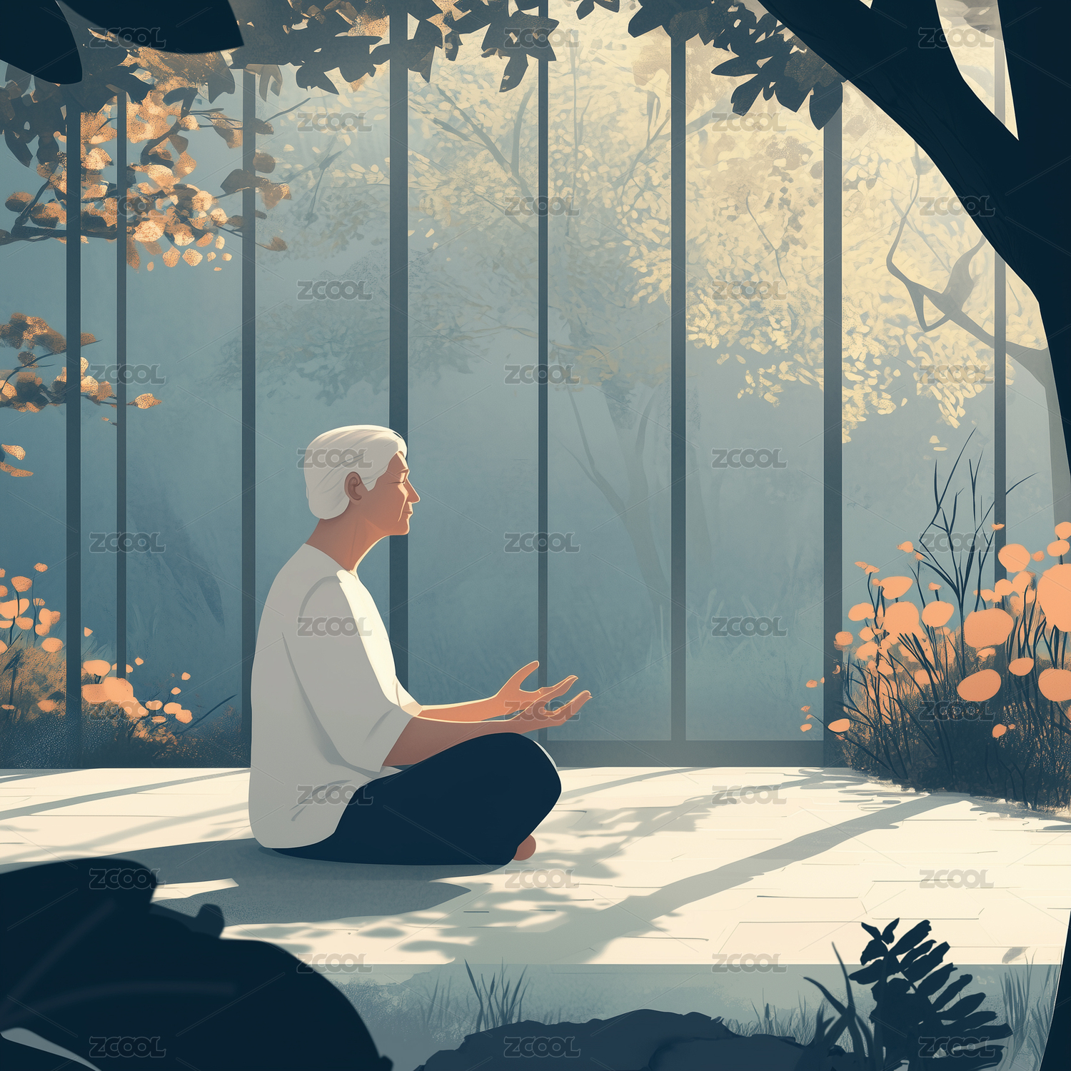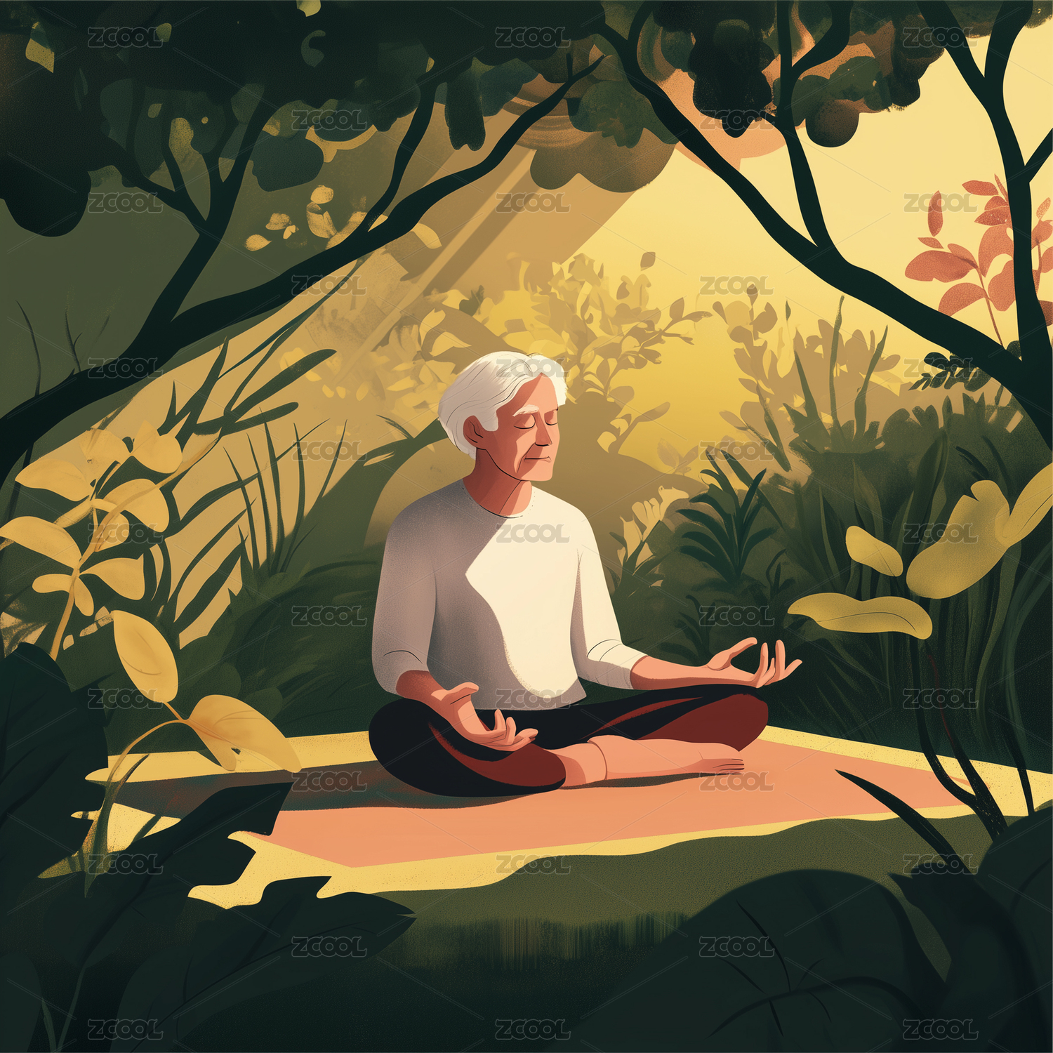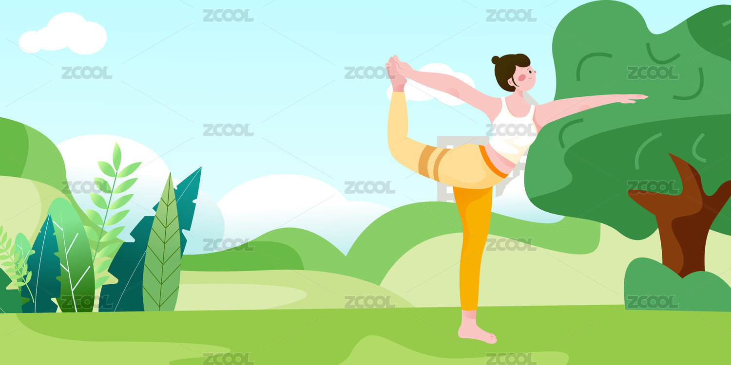 美丽的年轻女孩在户外森林练习瑜伽健身插画
