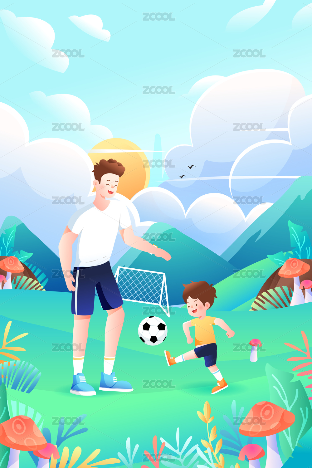卡通儿童节父亲节亲子互动玩乐爸爸父爱插画