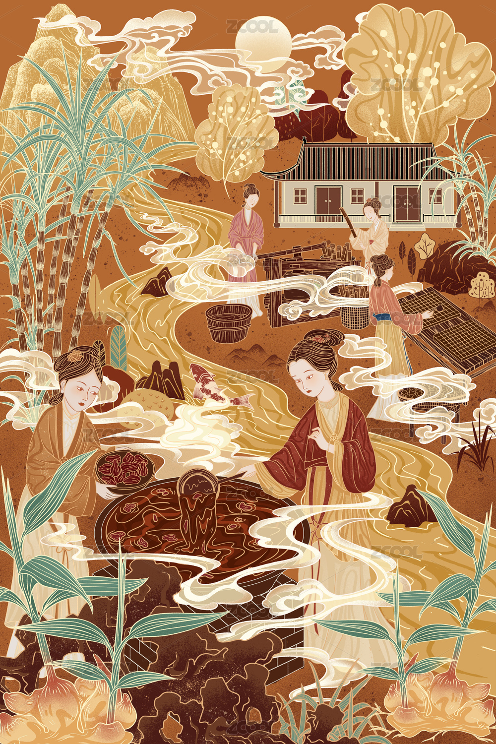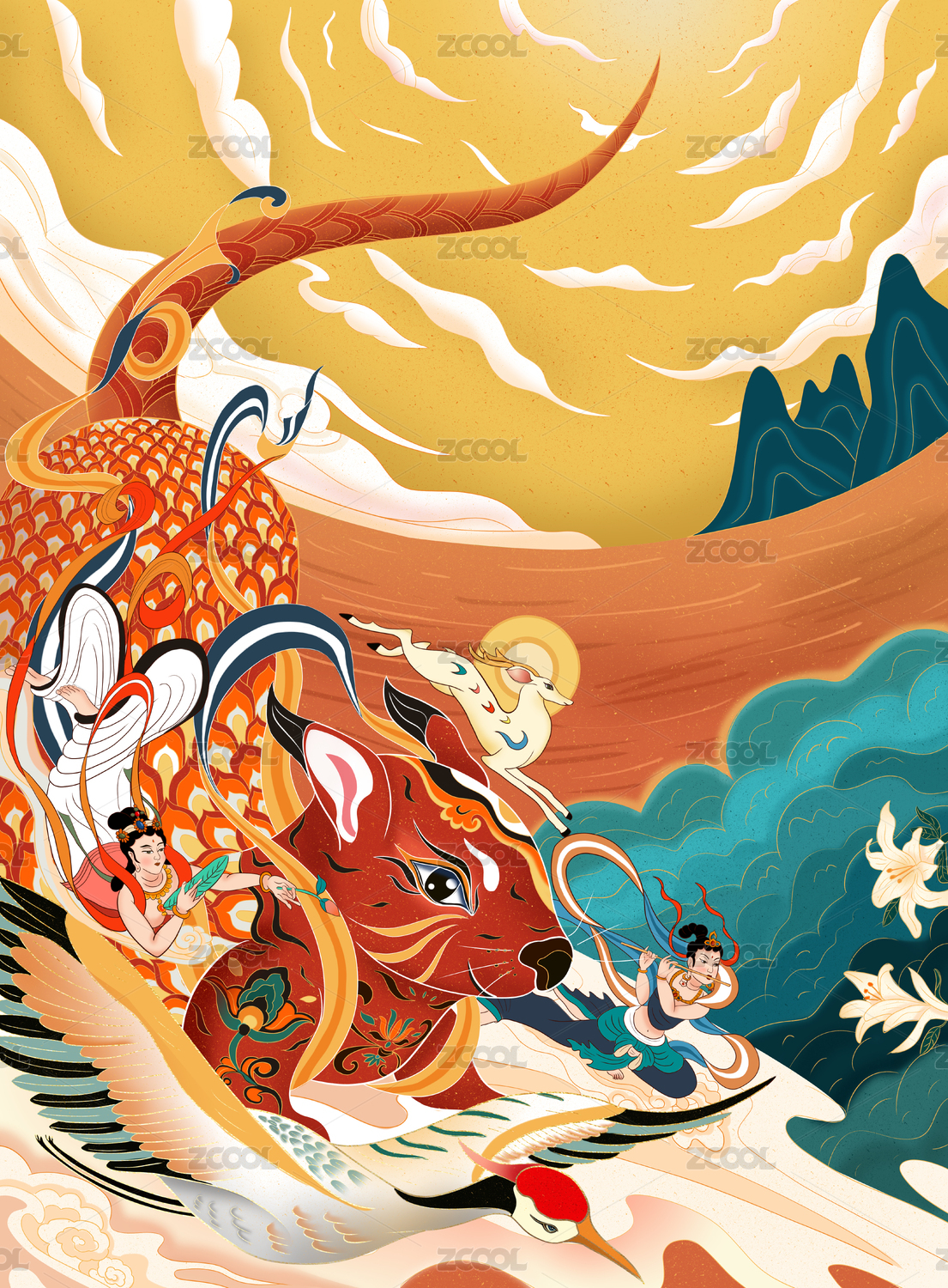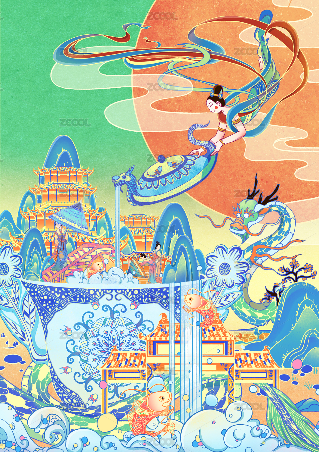 金鱼,金鱼贺岁,民族风,原创,中国风,插画设计,文创,艺术,抽象,鱼