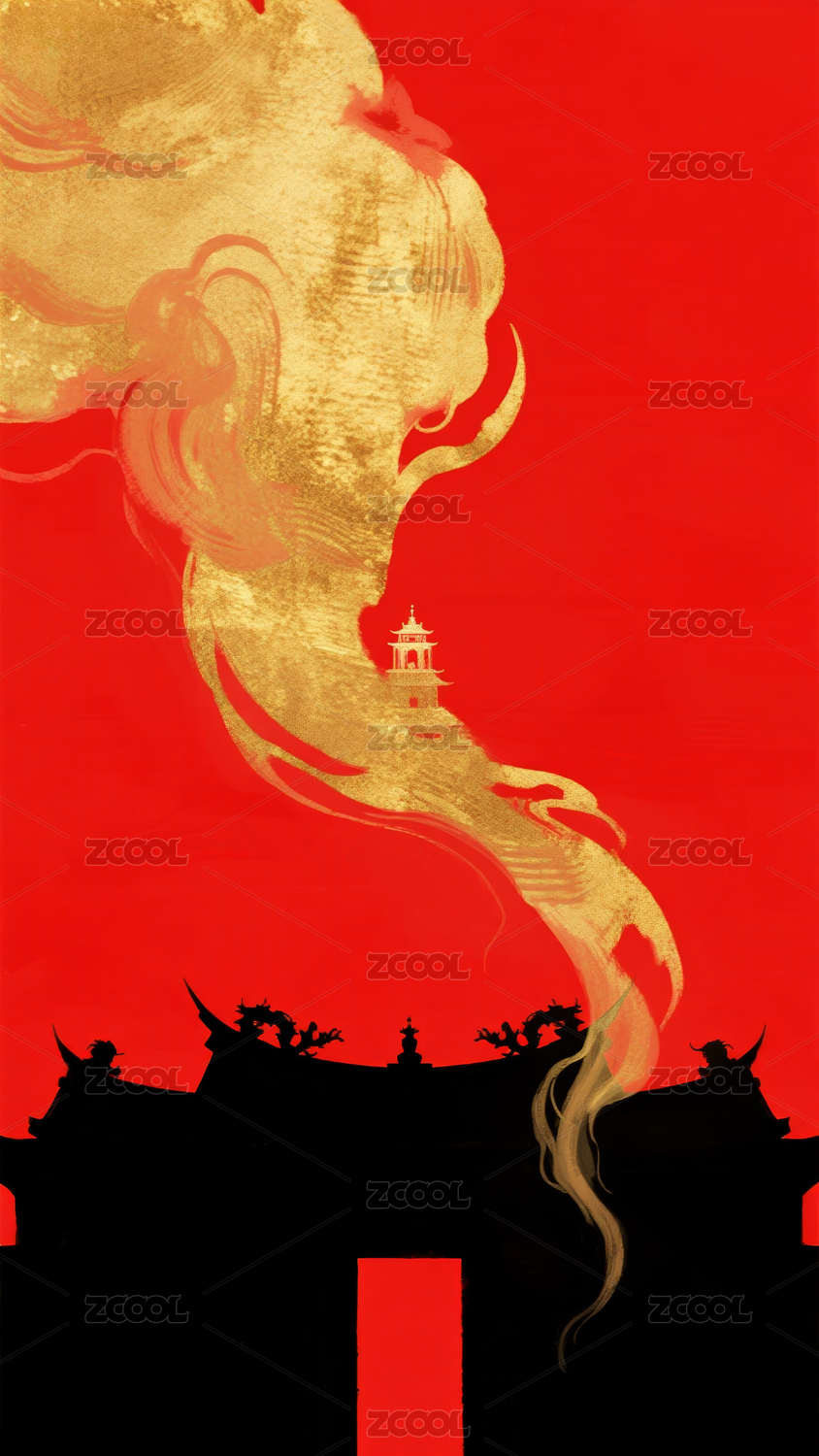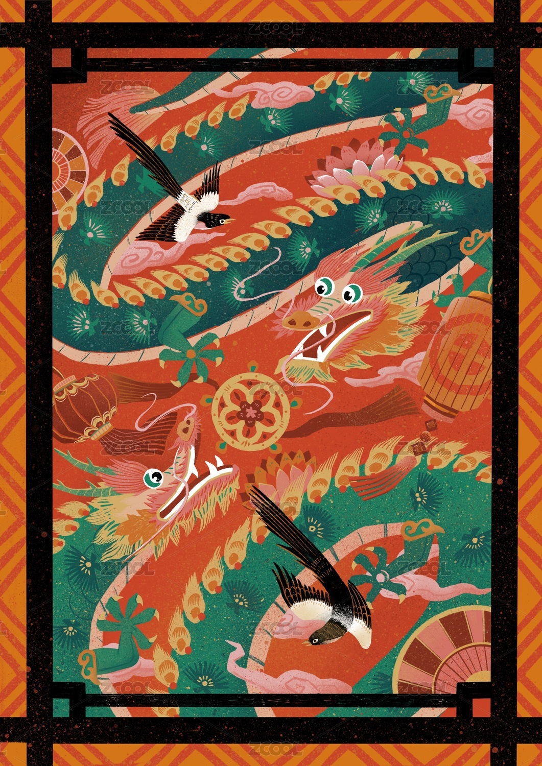 2025恭贺新春迎财神舞龙蛇年国潮插画