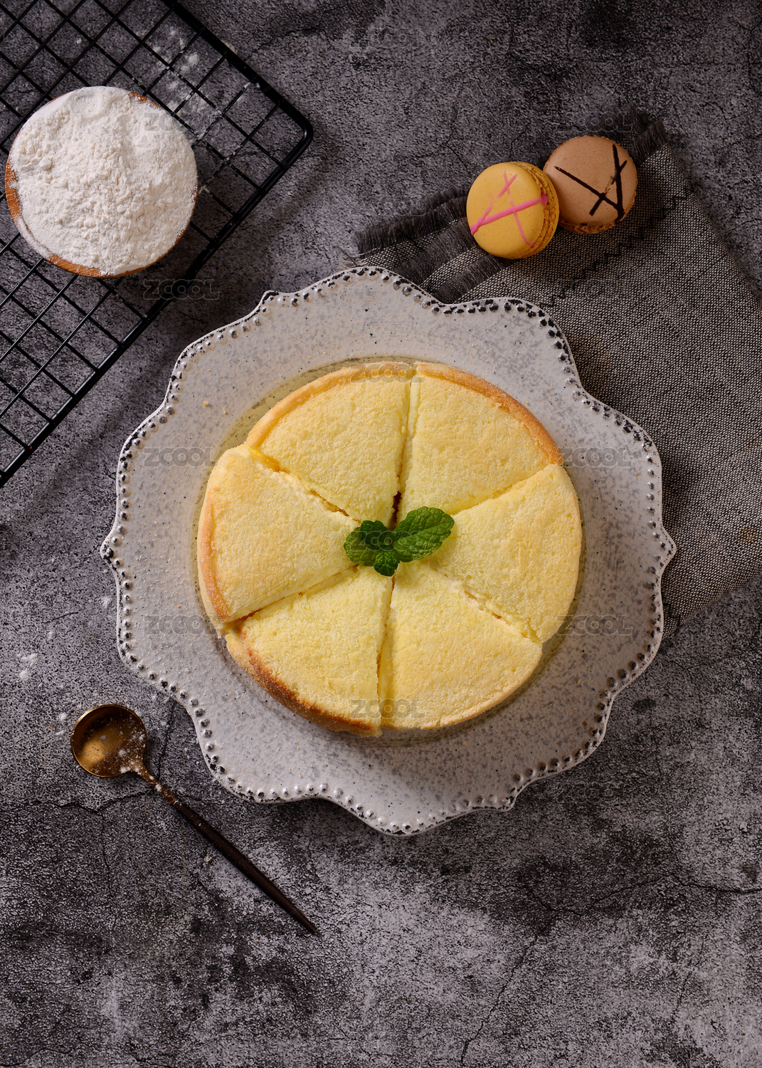 餐具里摆放的乳酪蛋糕