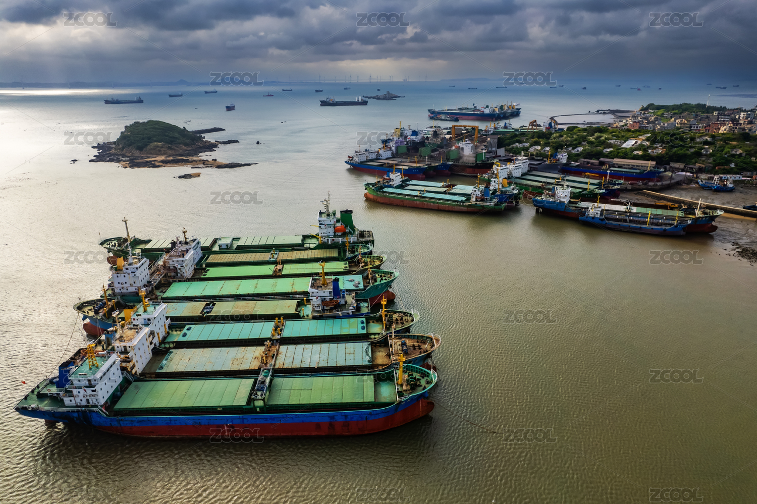 造船厂,重型,起重机,机械,设备,龙门吊,海岛,海岸线,海洋,拖船