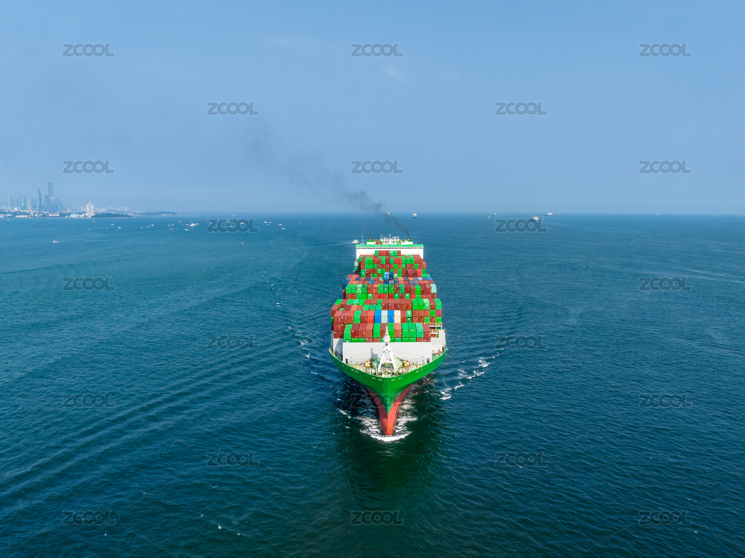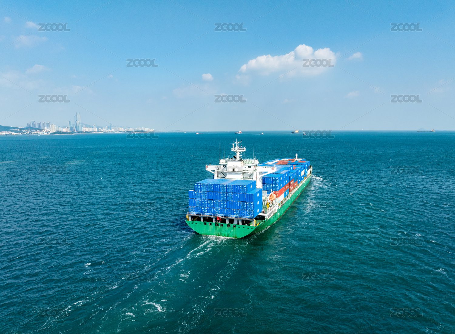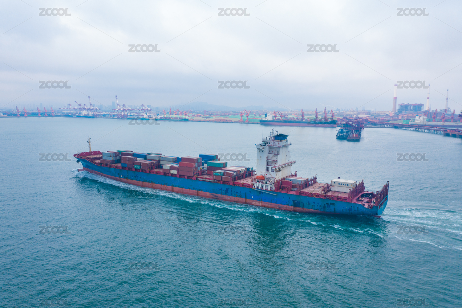 山东青岛海域上行驶的货船