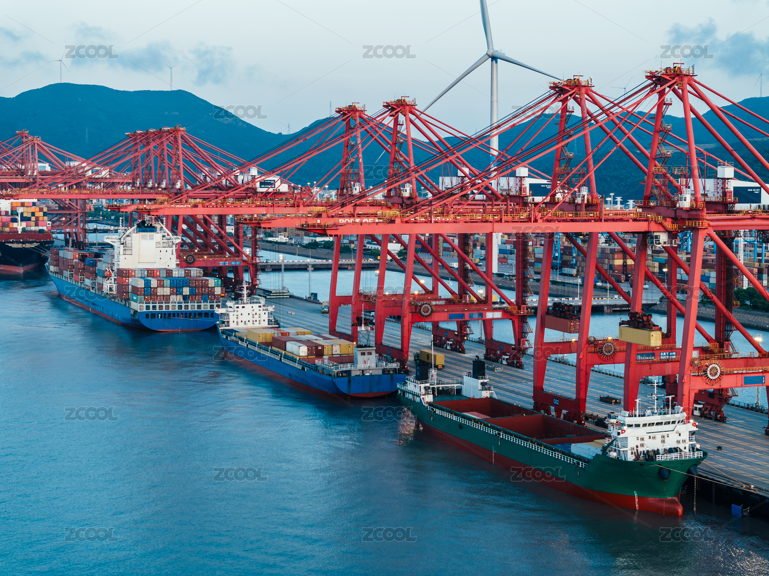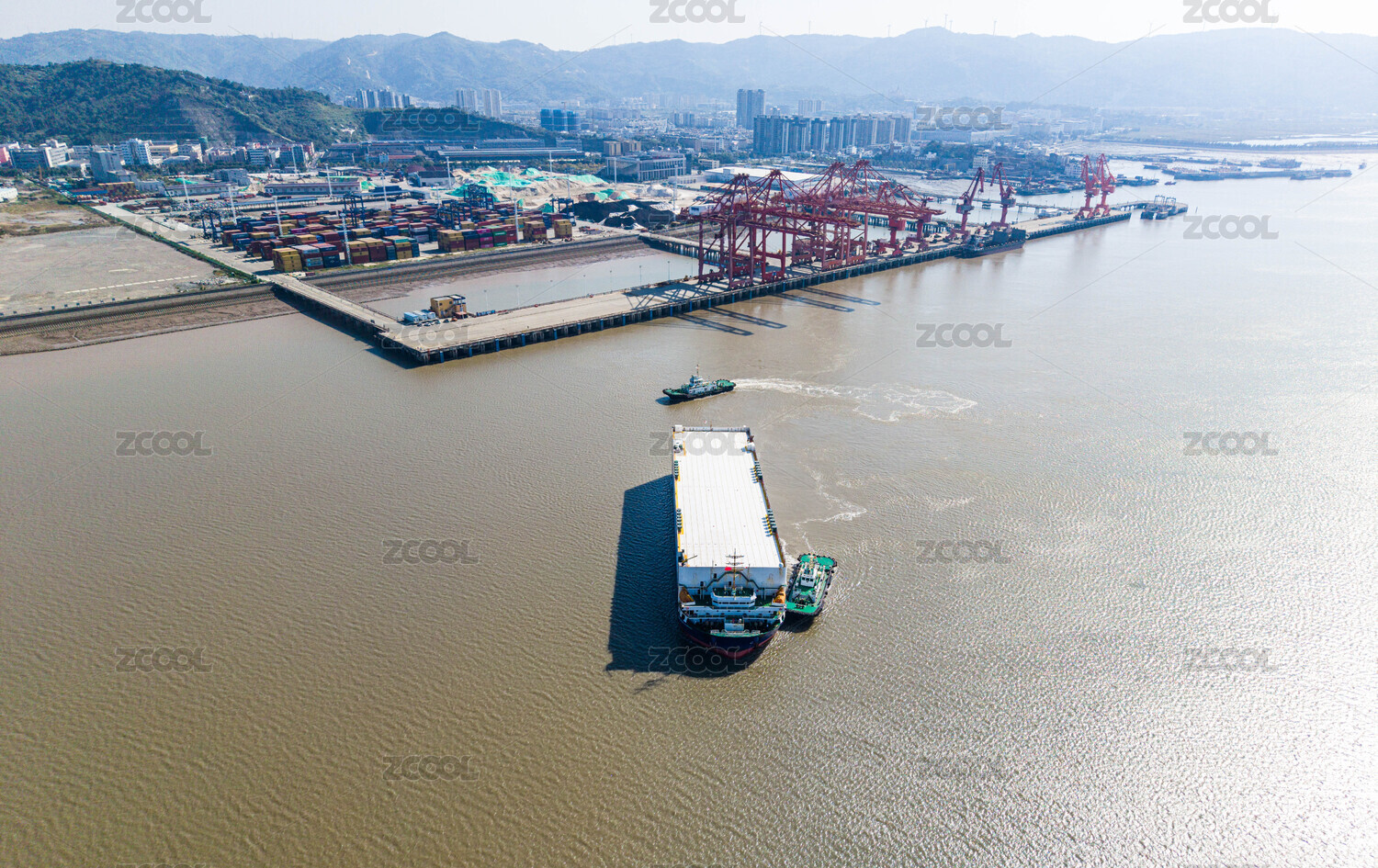 港口码头的货船和集装箱