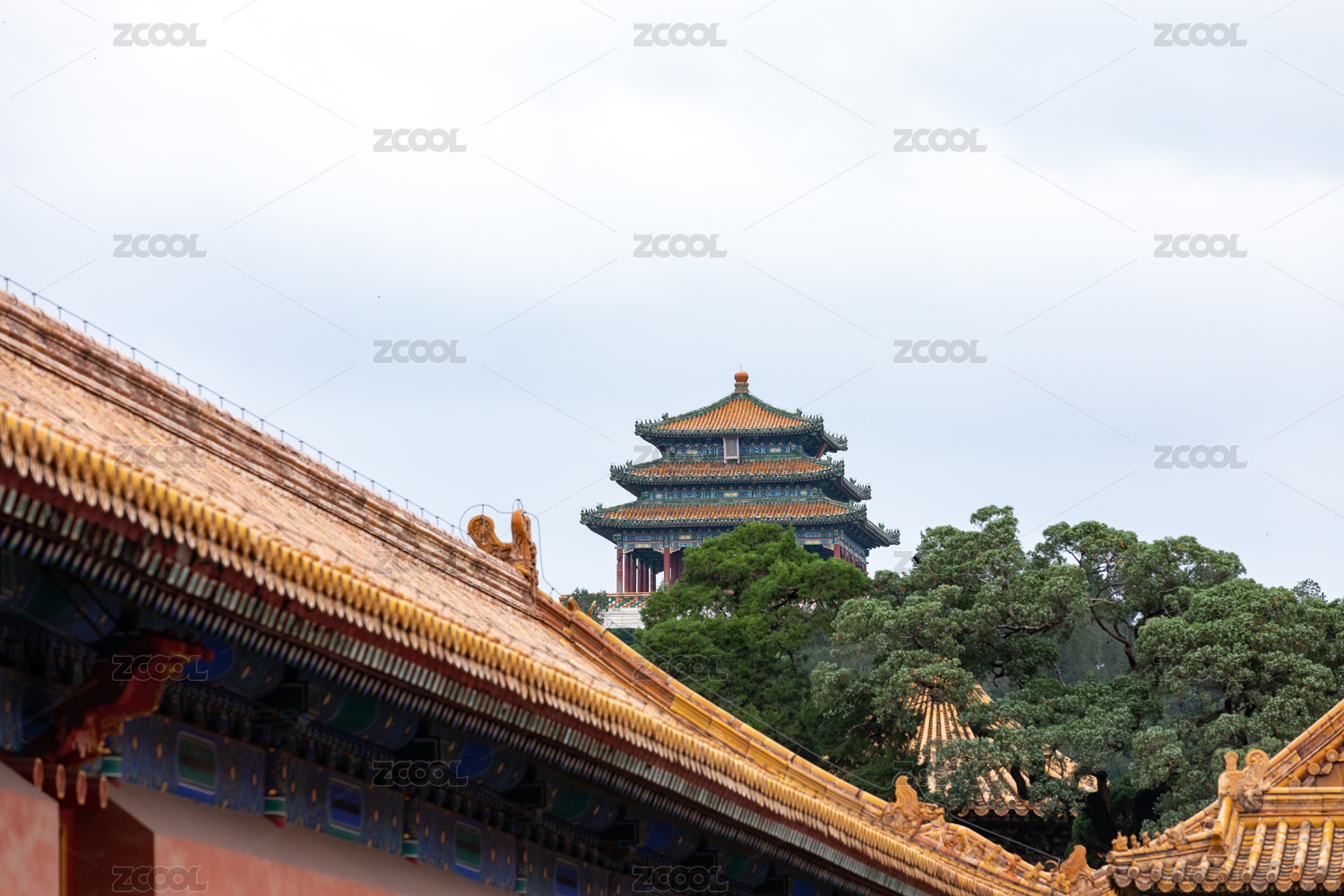 北京,北海,公园,蓝天,白云,五龙亭,神兽,望春亭,树木,遗址