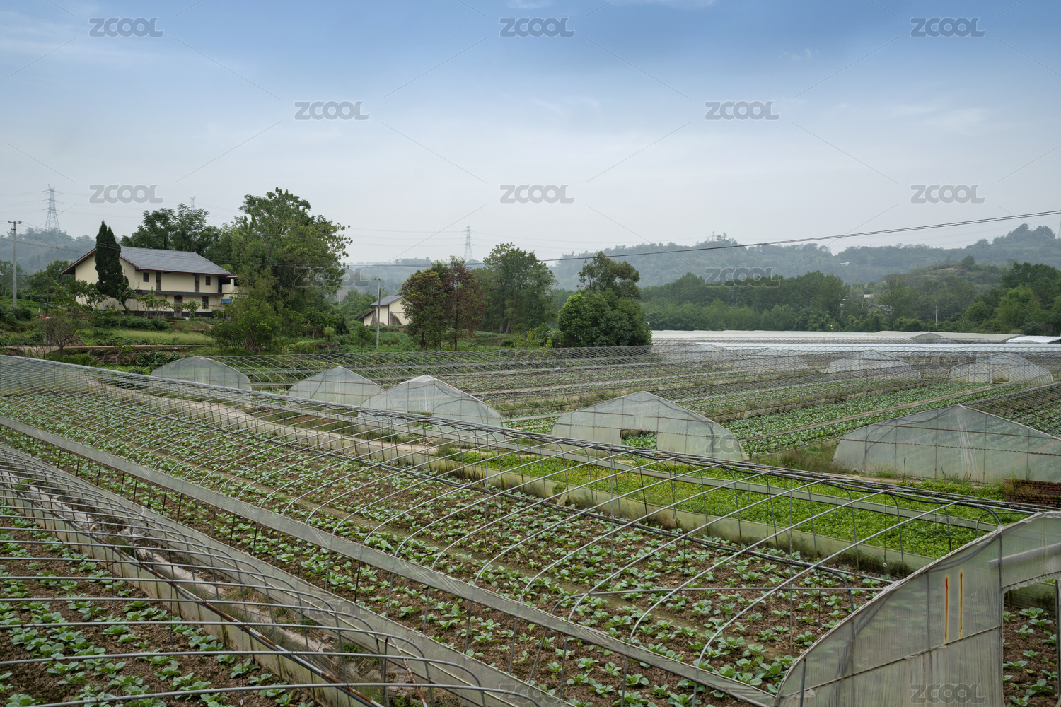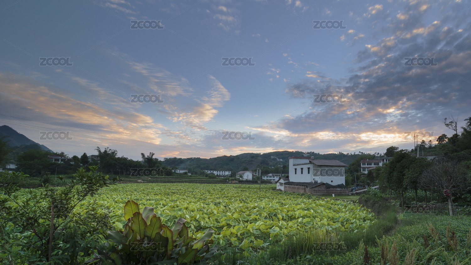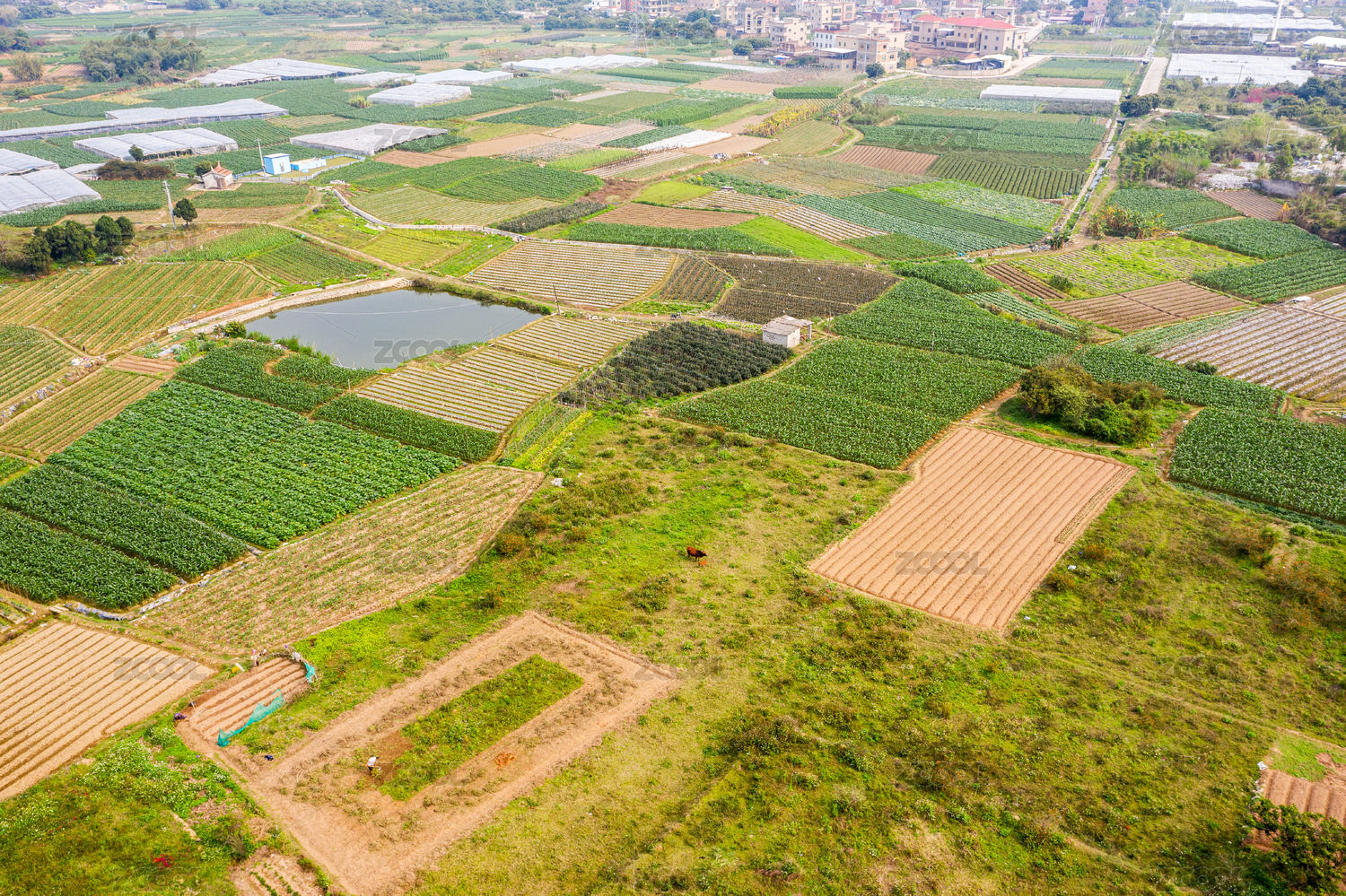 一片绿色水稻田远景照片,喀斯特地貌远景