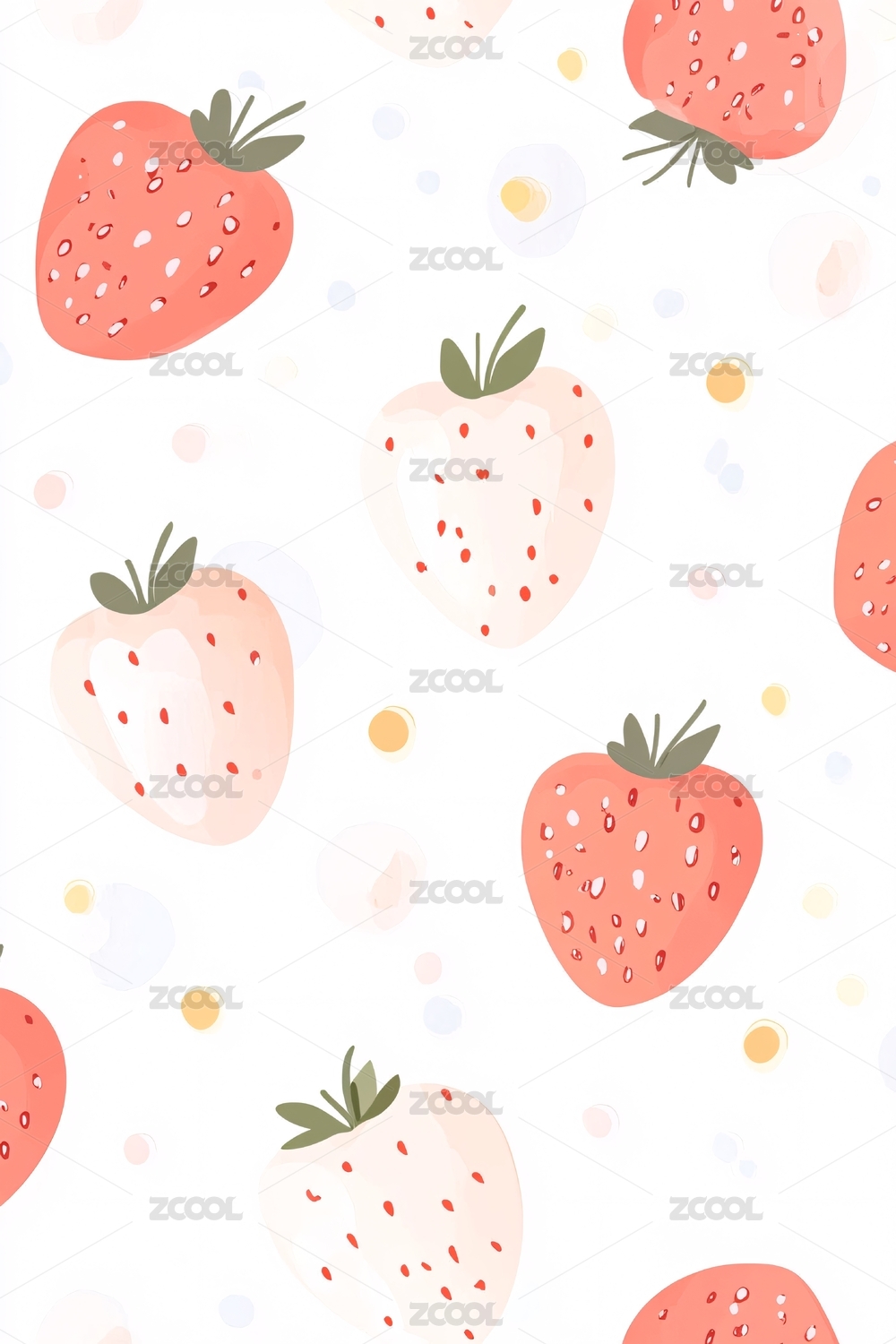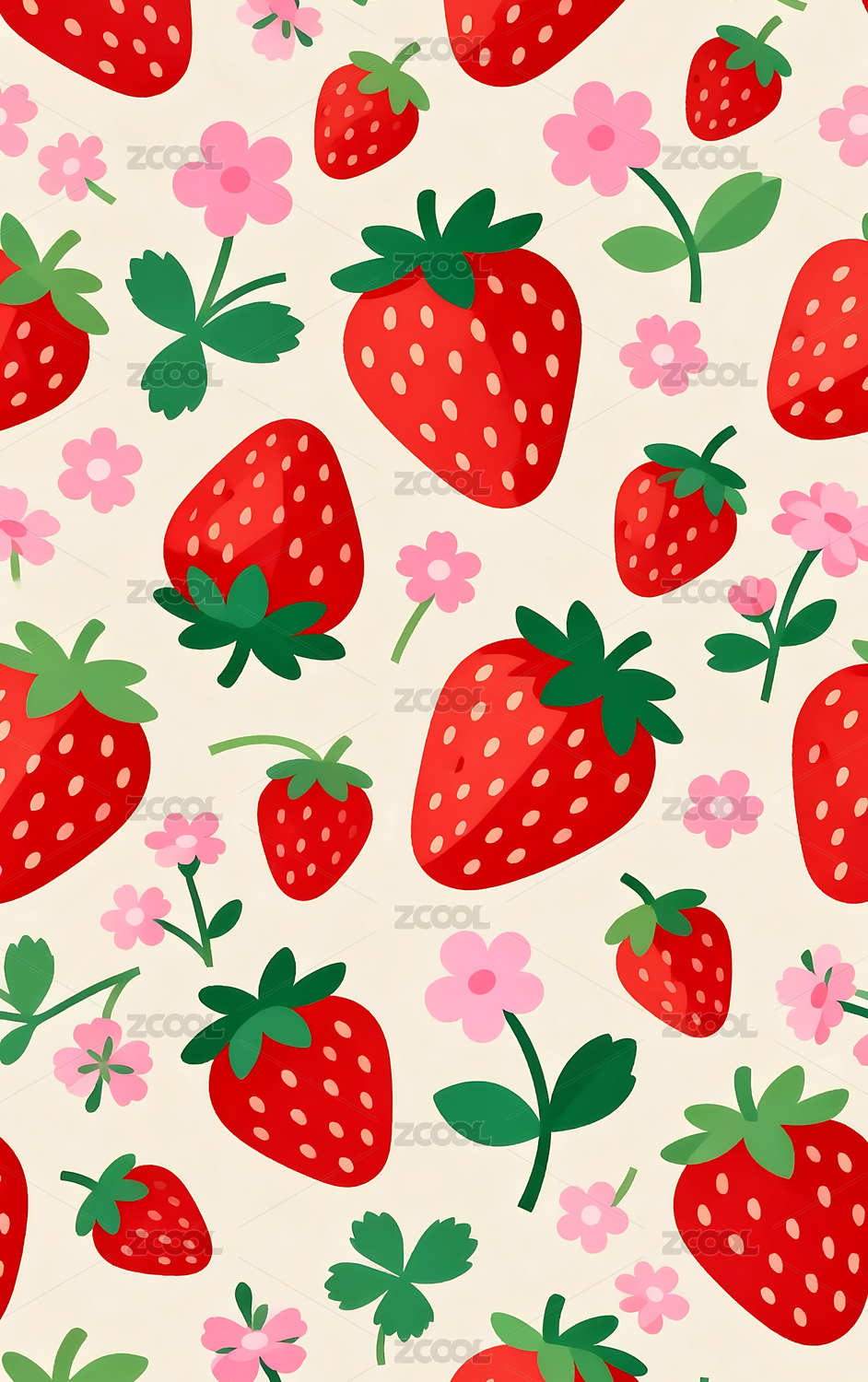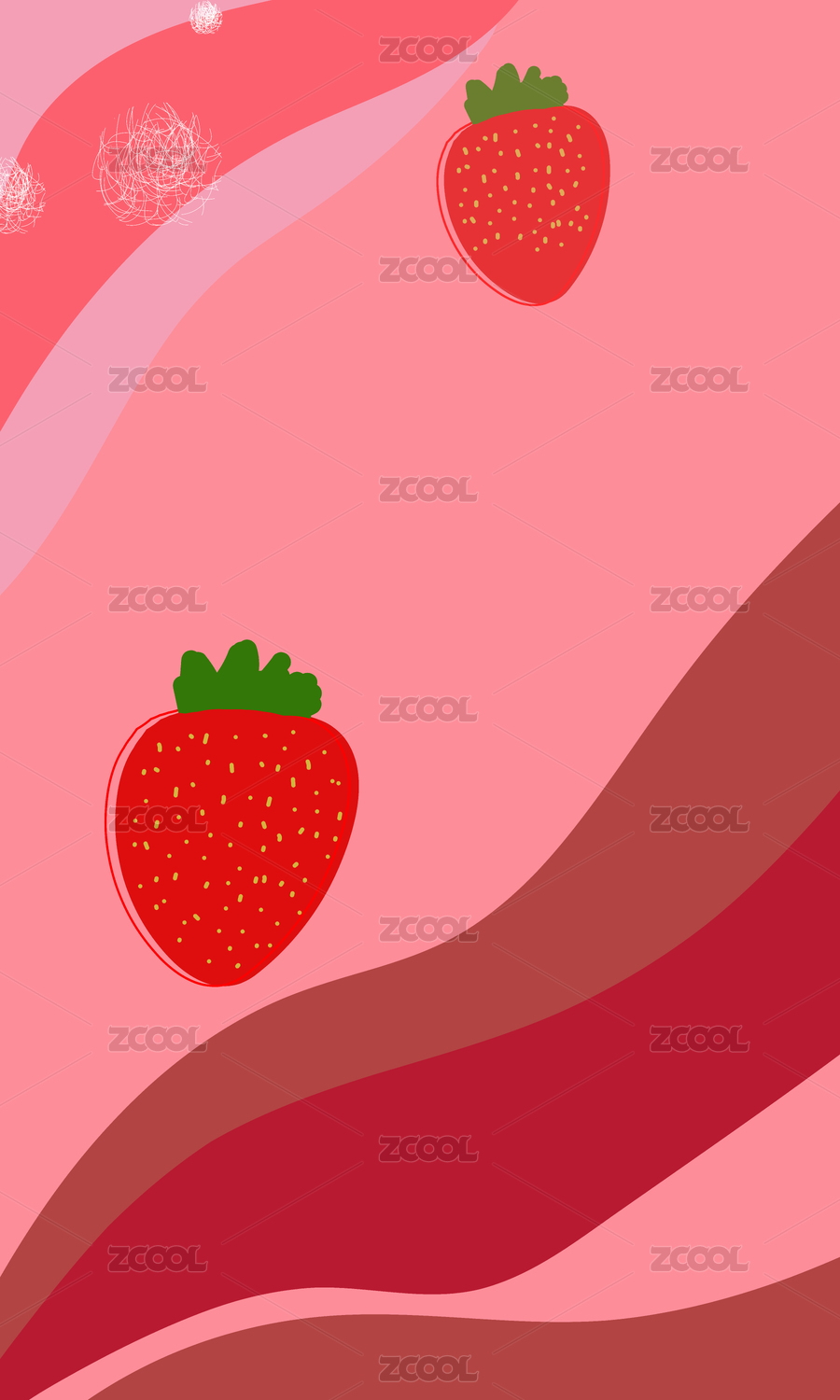 扁平手绘草莓水果矢量插画背景社交媒体海报
