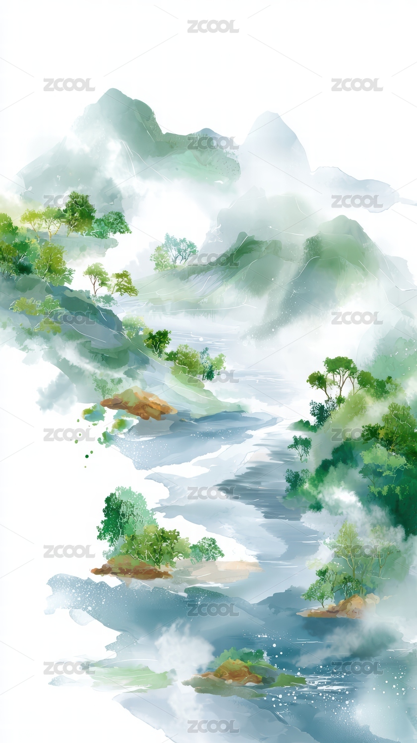 水彩溪流插画