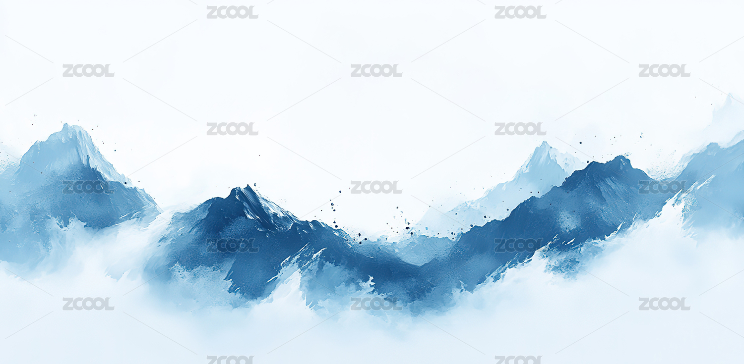 水墨风格蓝色山水画