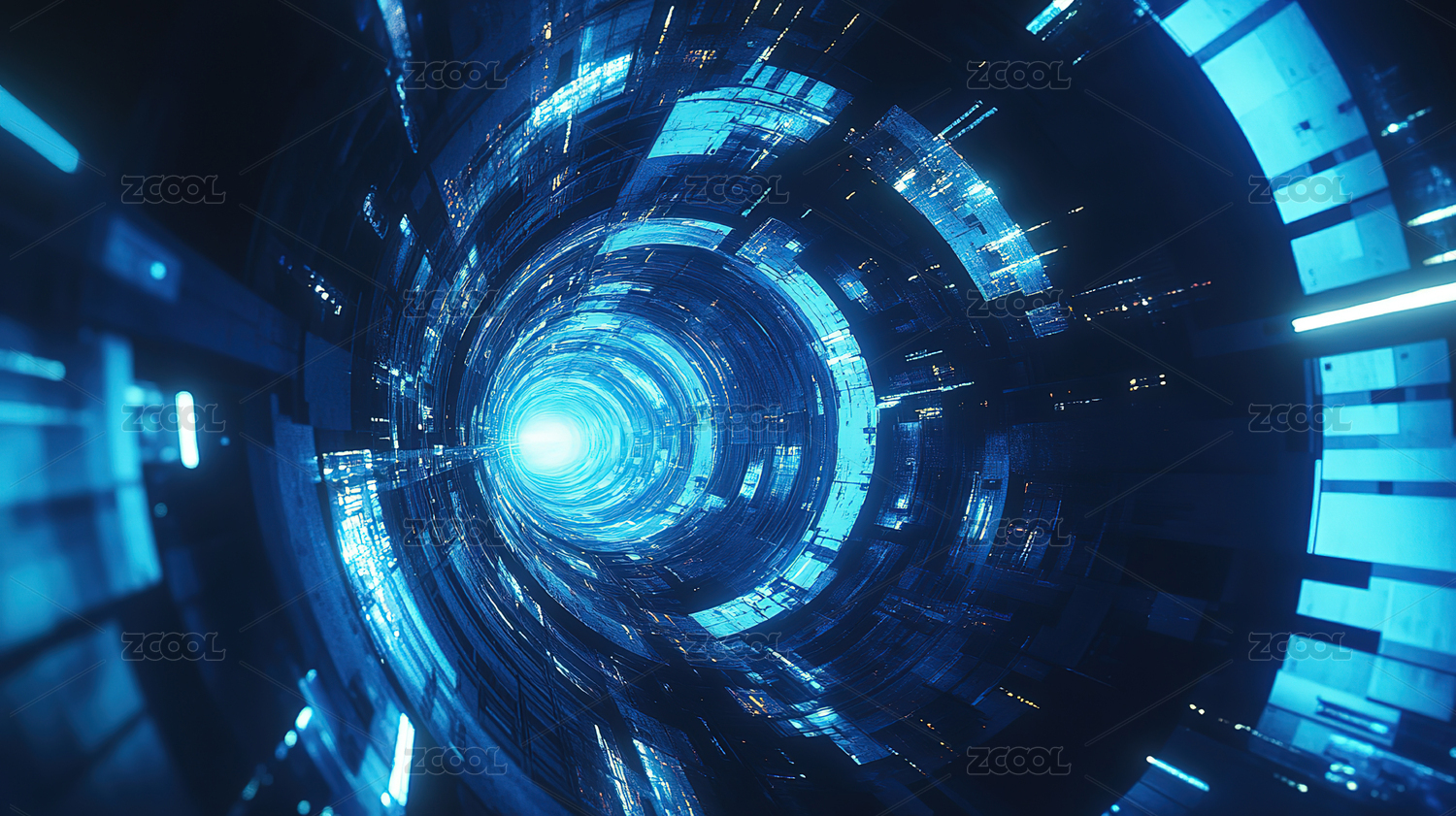 3D渲染的科幻延伸背景,几何隧道和霓虹灯