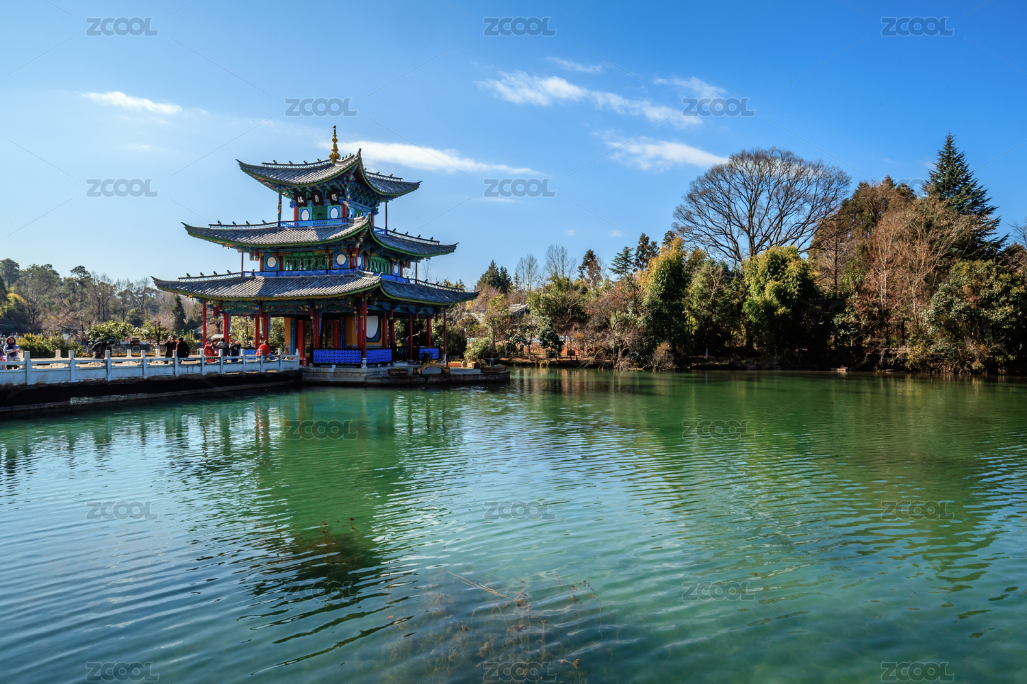 云南丽江黑龙潭公园里的建筑风景
