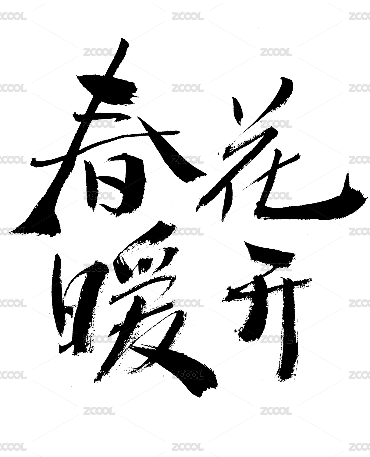 春暖花开-毛笔字手写矢量书法字春天水墨