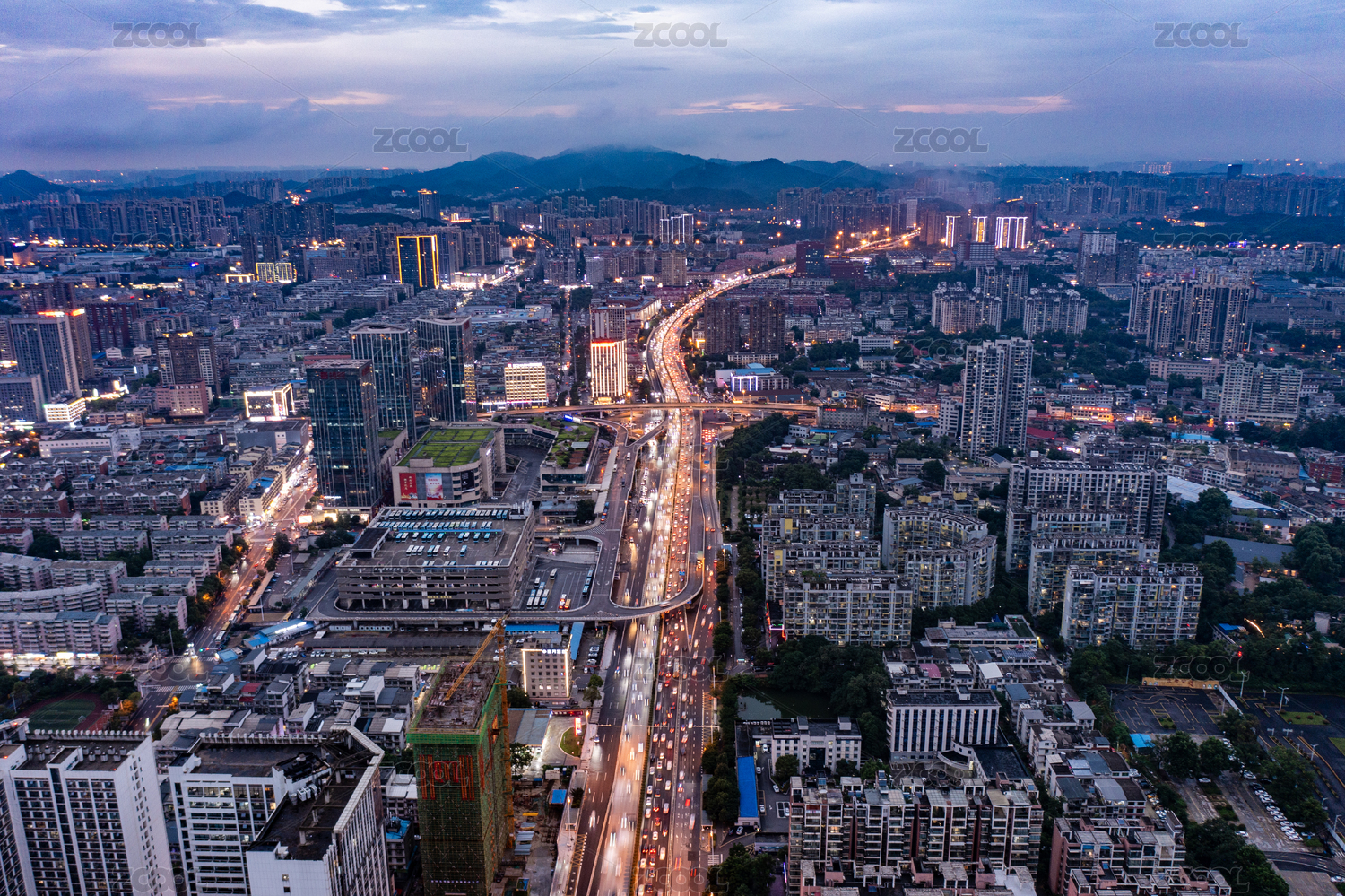夜景,航拍,鸟瞰,俯瞰,俯视图,高视角,办公楼,背景,城市,城市风光