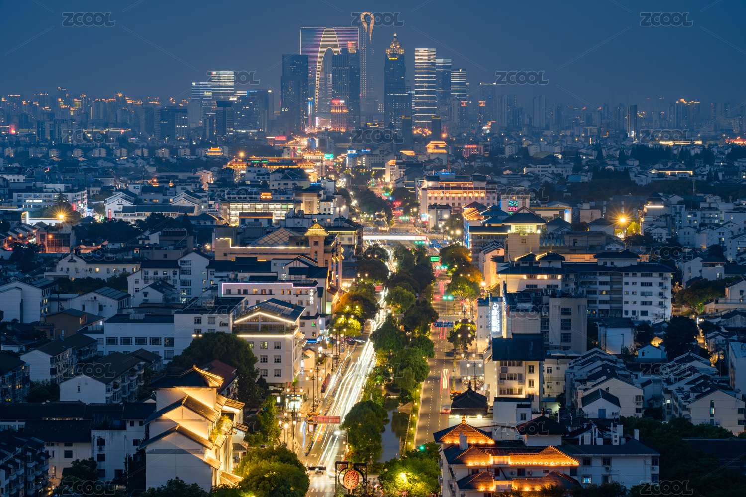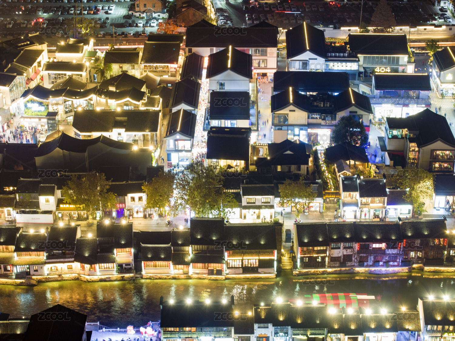 航拍苏州甪直古镇江南文化园夜景灯光秀