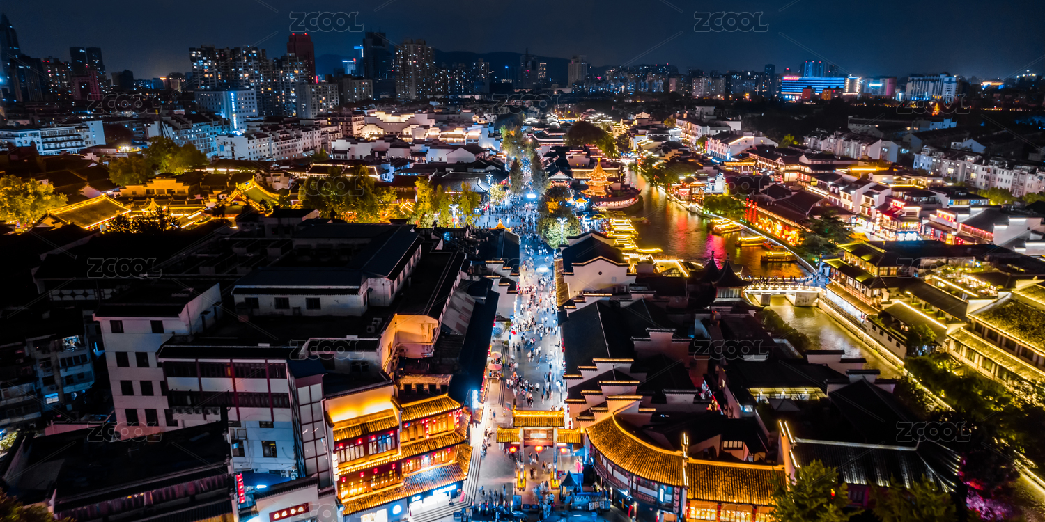 航拍南京老城秦淮河夫子庙夜景大画幅