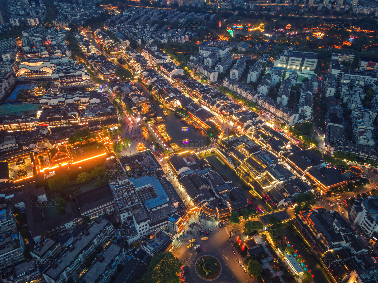 航拍,鸟瞰,高视角,南京,老门东,中国,古建筑,民居,商业,风格