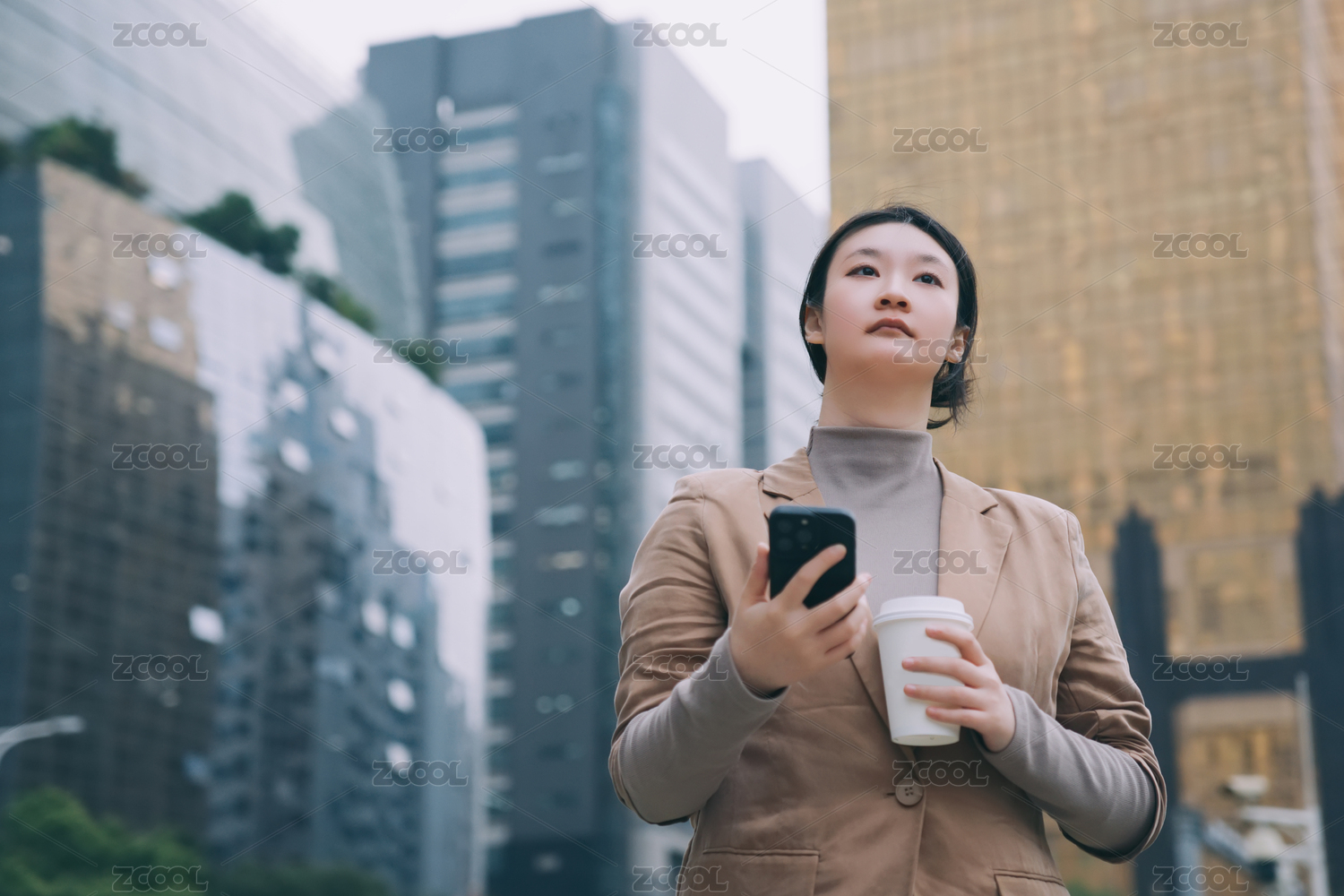 女商人,智能手机,城市,专业人士,技术,手机,商务装,咖啡杯,公司,连接