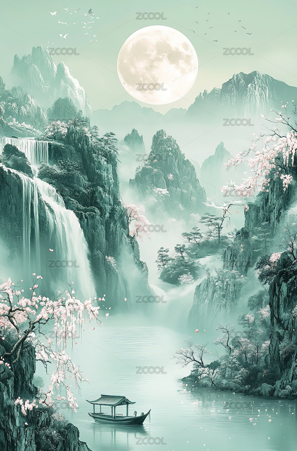 风景,自然,背景,插画,中国文化,蓝色,户外,中国画,艺术,地形
