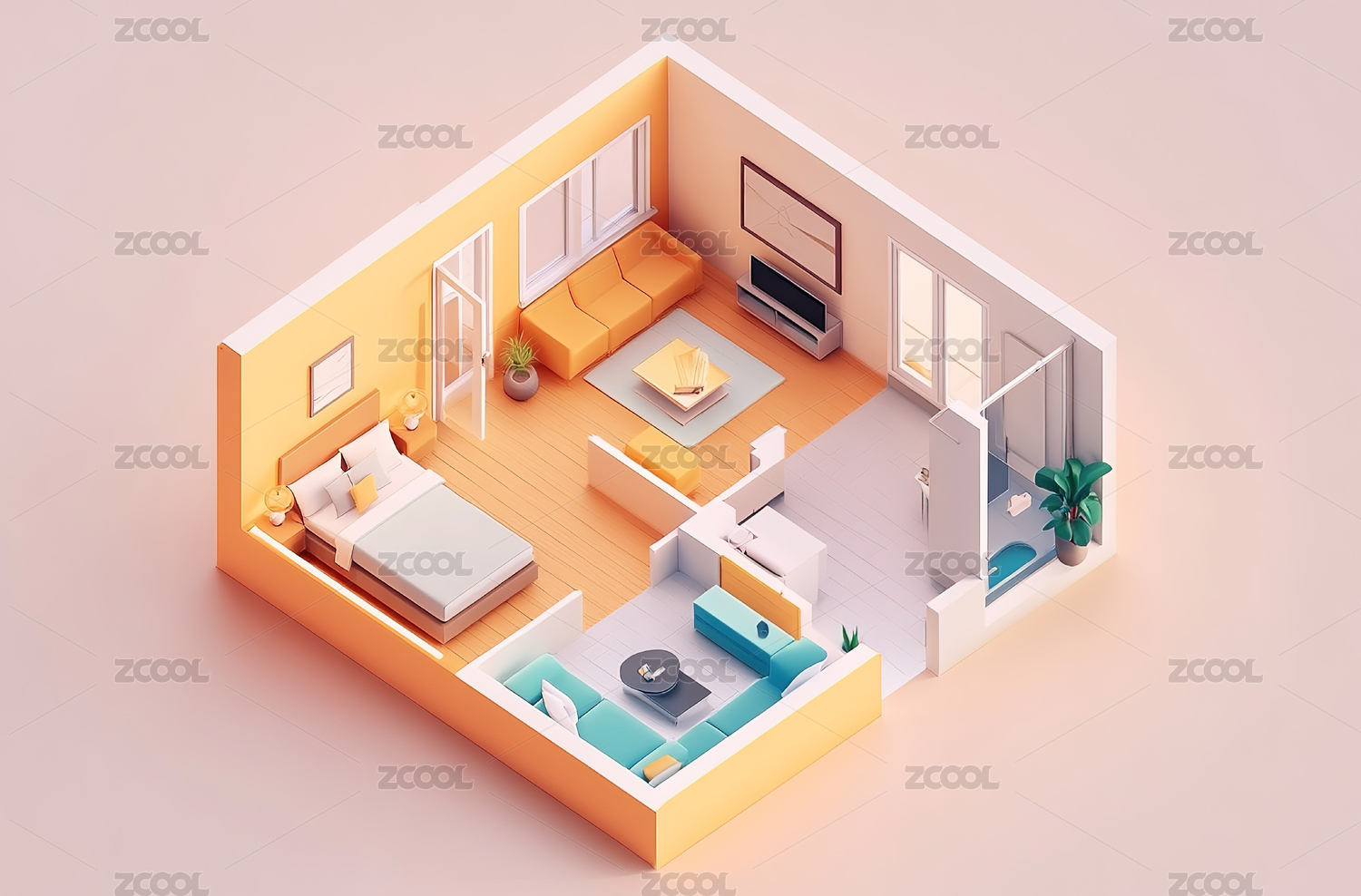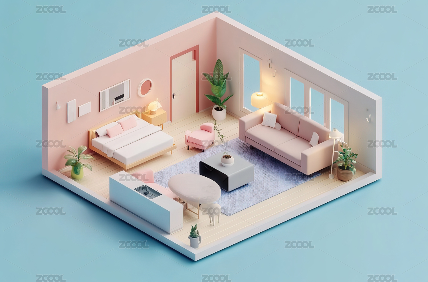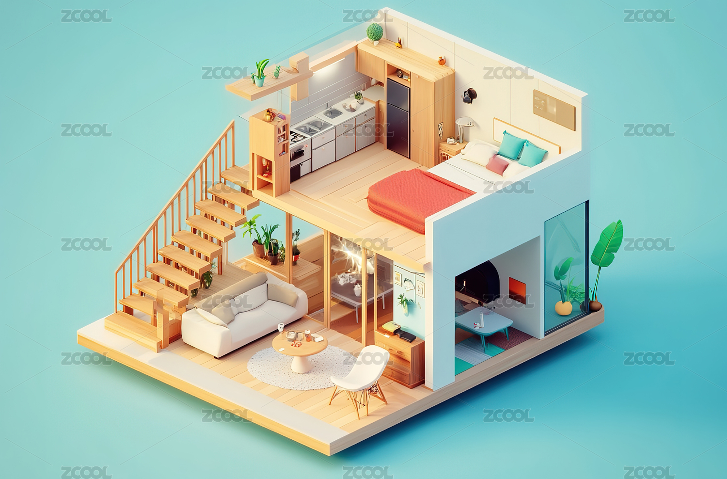 等距视图,微缩景观,模型,现代,简约,装修,装饰,家装,设计,风格