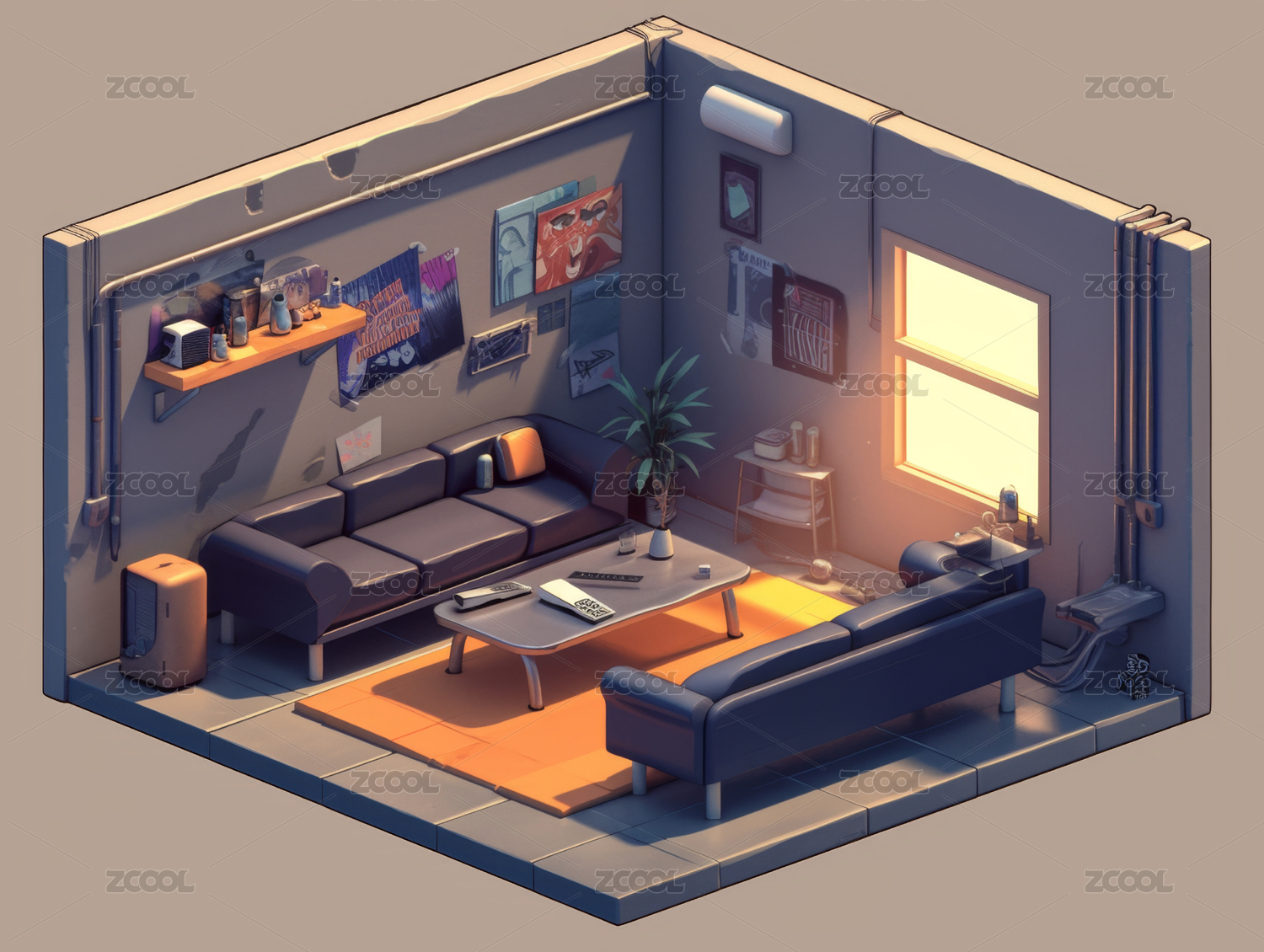 等距视图下的现代简约装修风格的客厅