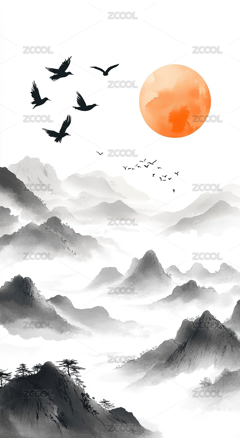 无人,中国文化,水墨画,插画,国风,地形,艺术,风景,节气,背景