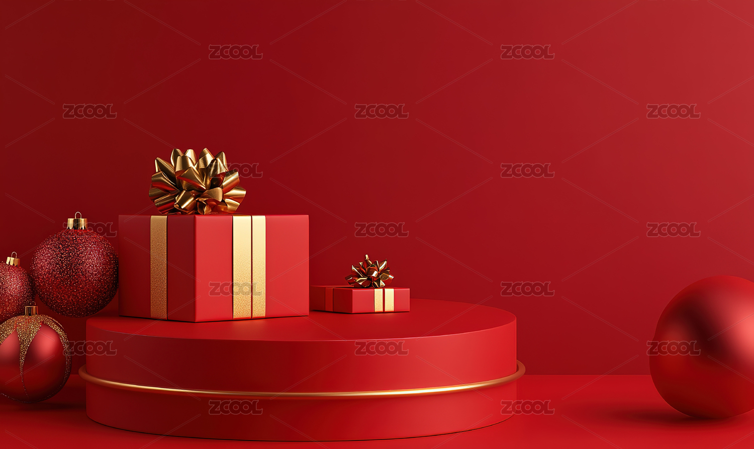 红色背景前的圣诞礼物和礼物