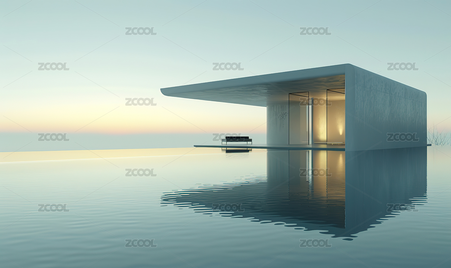 极简风格水上建筑夜景