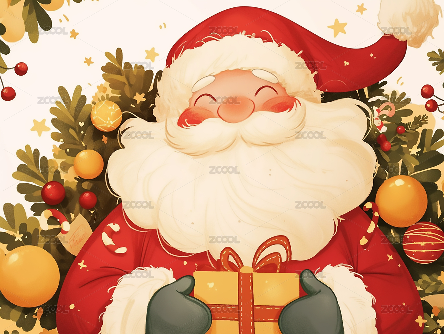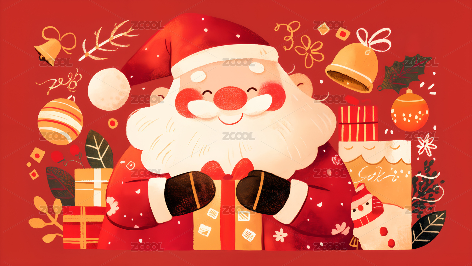 圣诞节装饰背景圣诞老人圣诞树冬季雪花插画