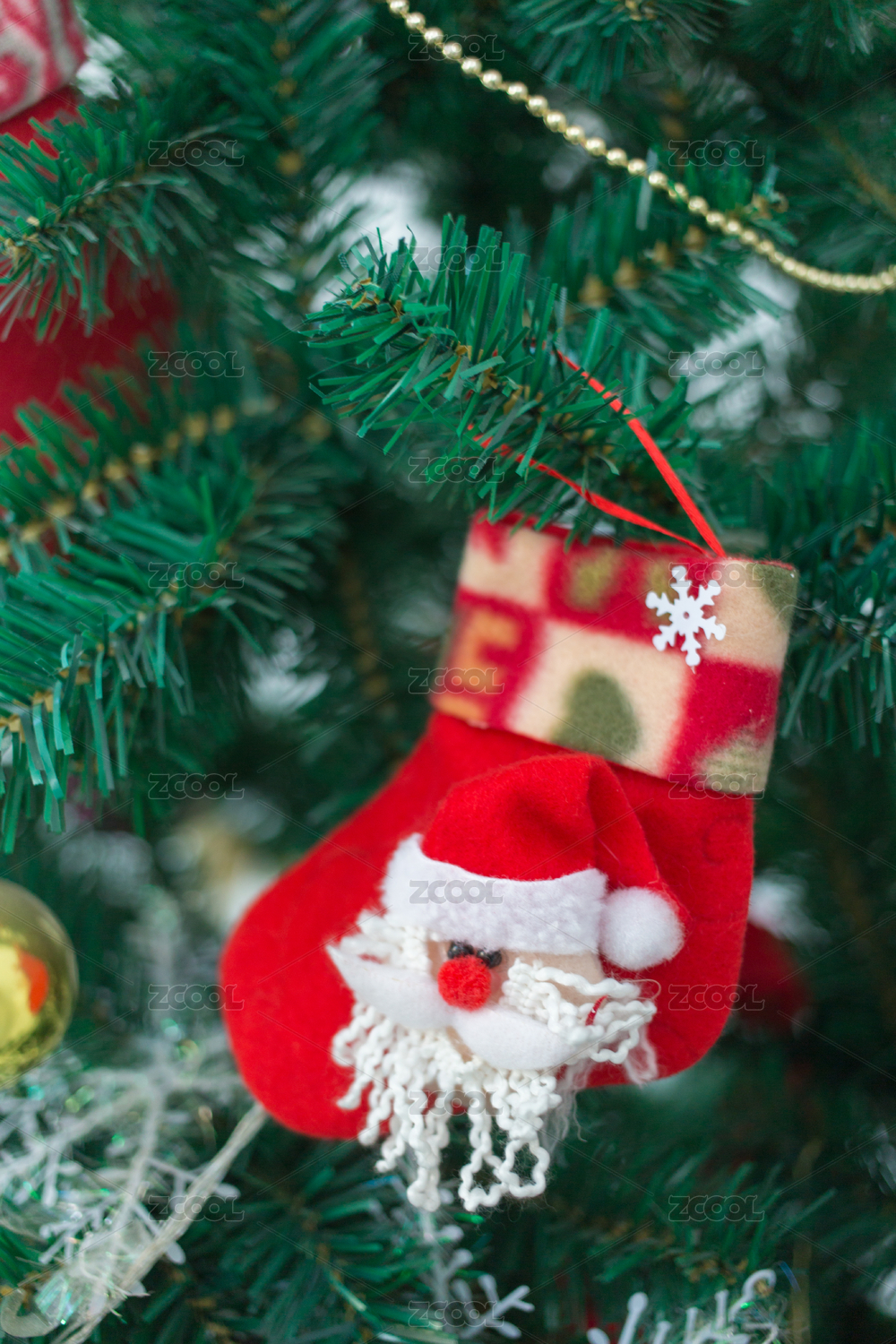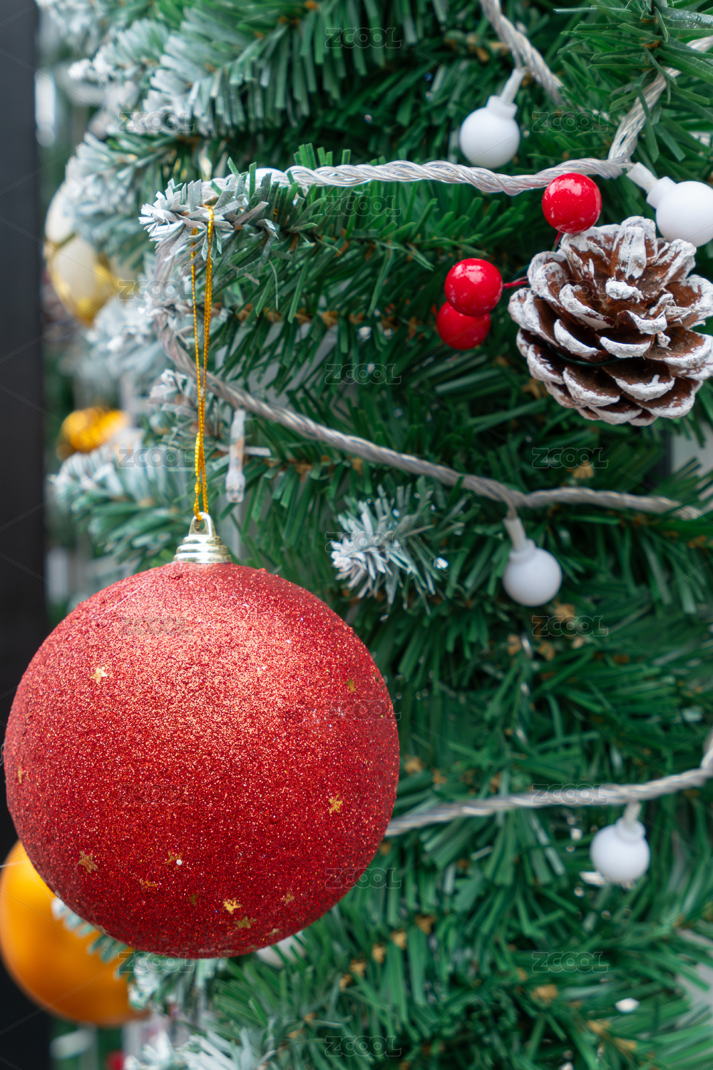 圣诞节里的挂满圣诞礼物的松树局部特写节日素