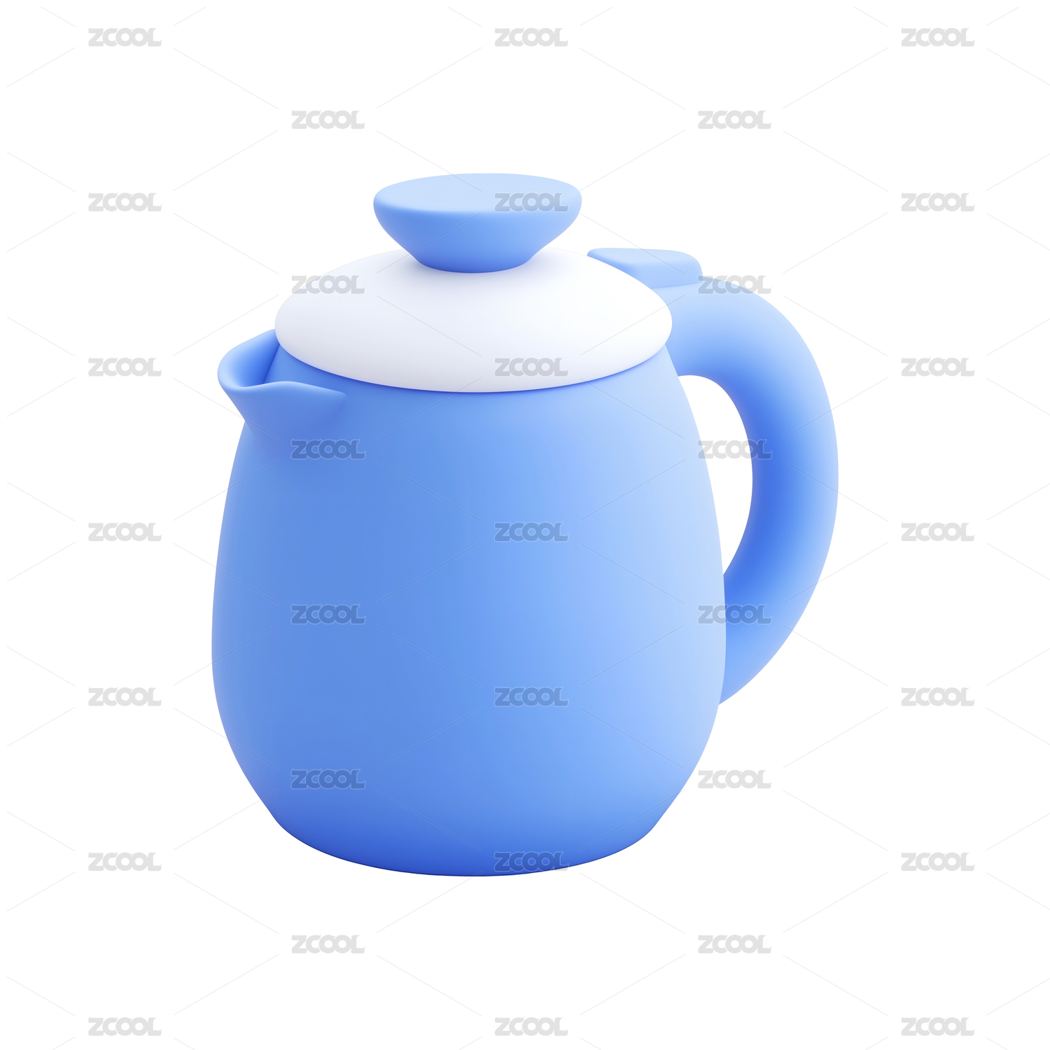 彩色时尚卡通可爱生活用品厨具水壶图标插图