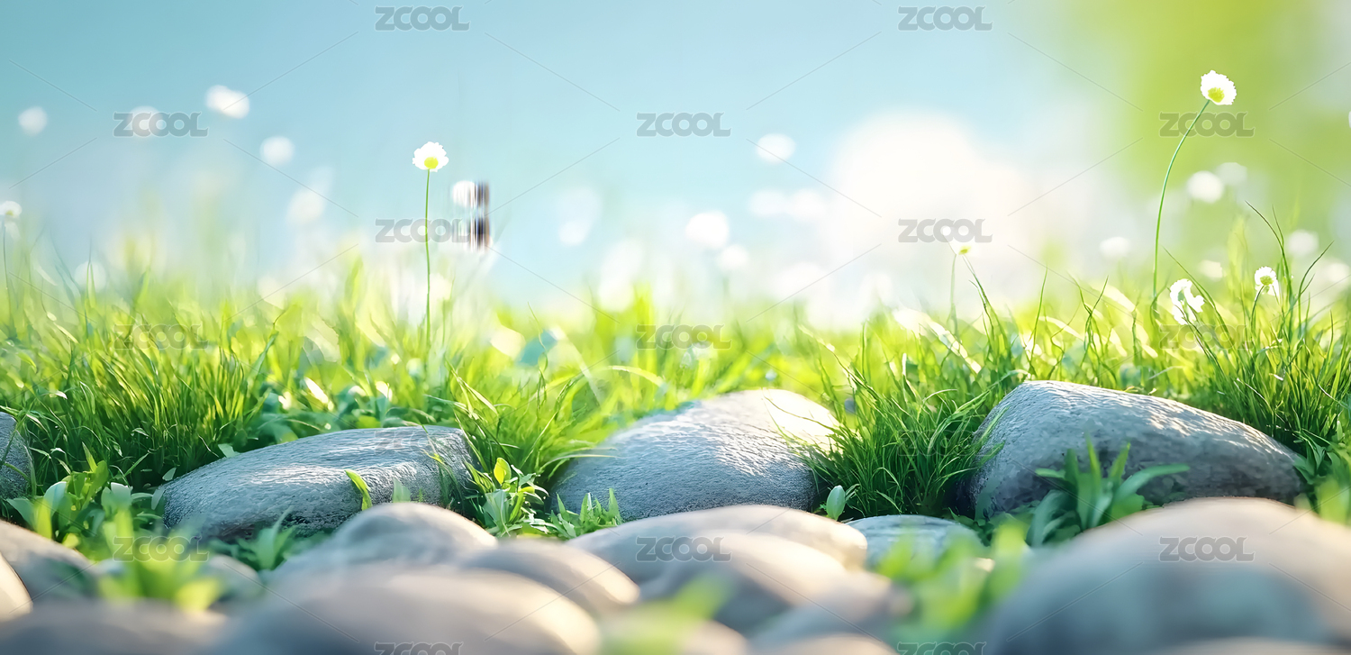 3D卡通春天草地可爱粉色花朵三维自然背景