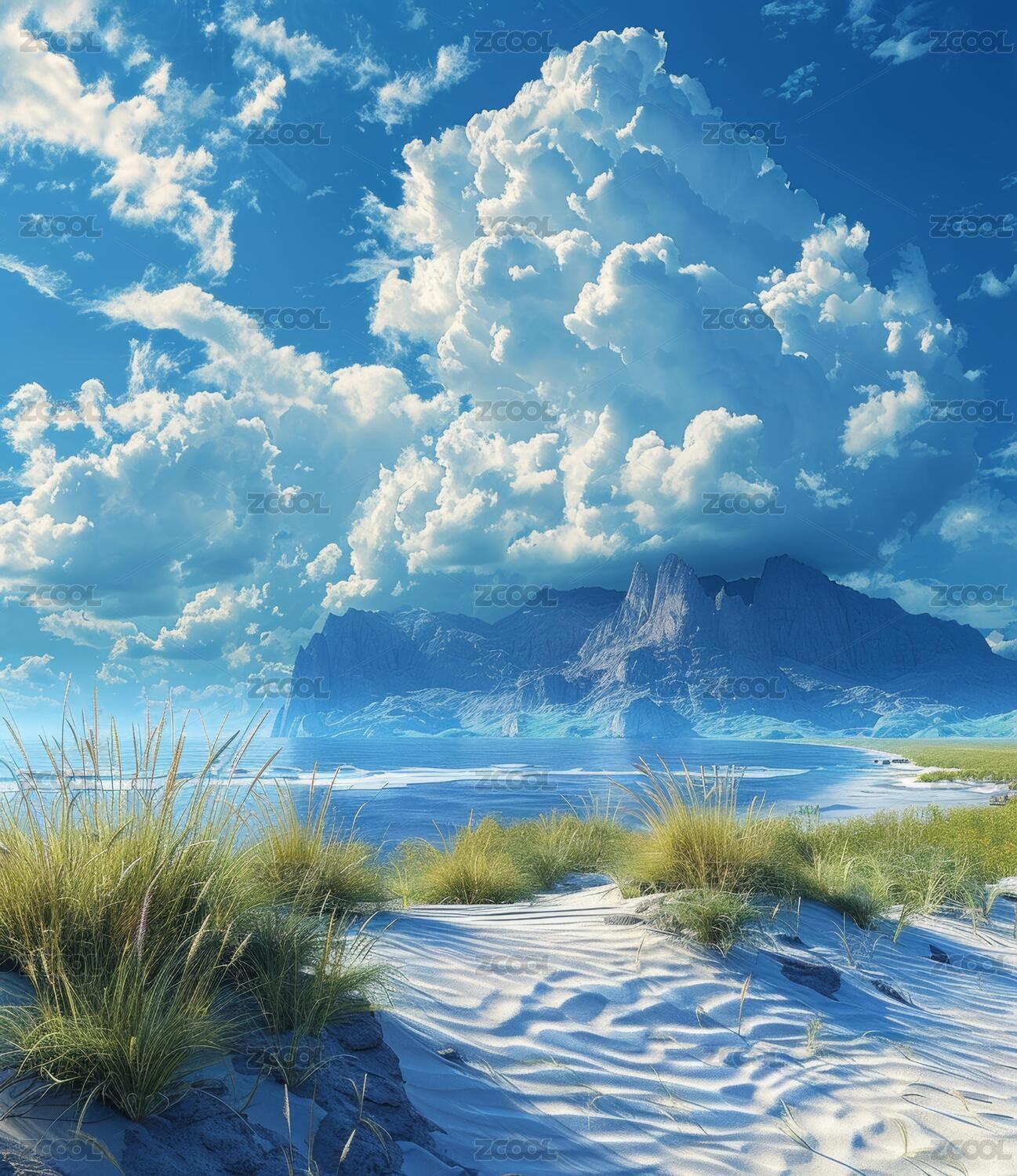 海天一色的山海奇观 雾锁山崖的宁静海滩