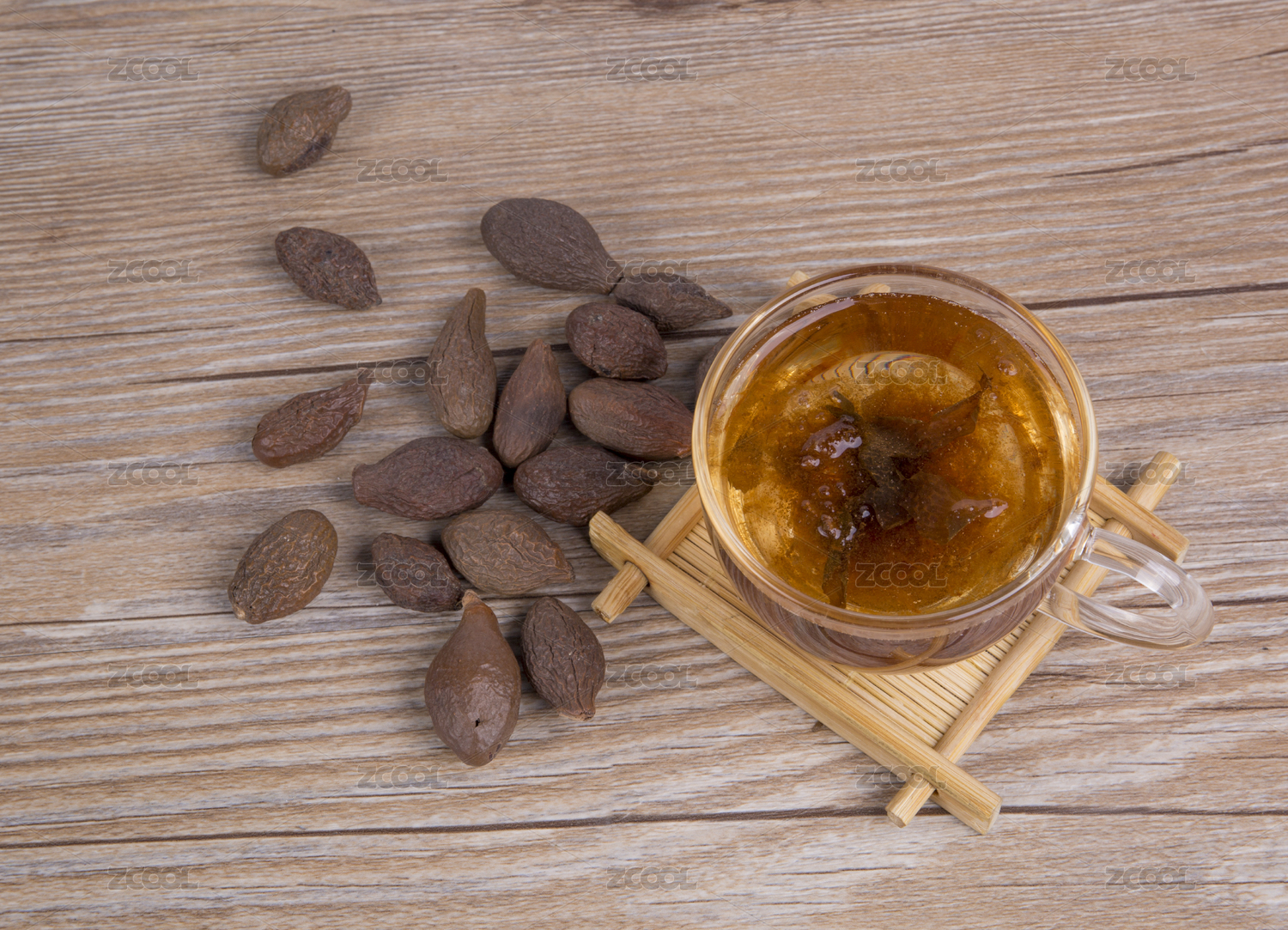 保健饮品黄芪枸杞茶摆放在桌面上特写