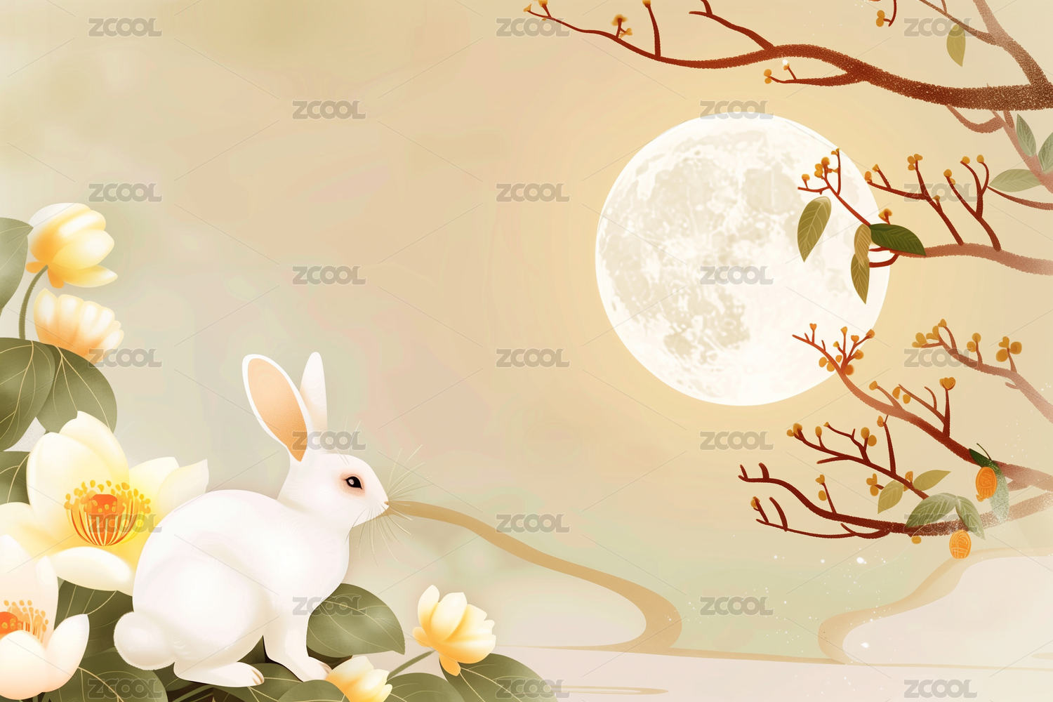 兔子玉兔灯笼月亮桂花可爱扁平插画