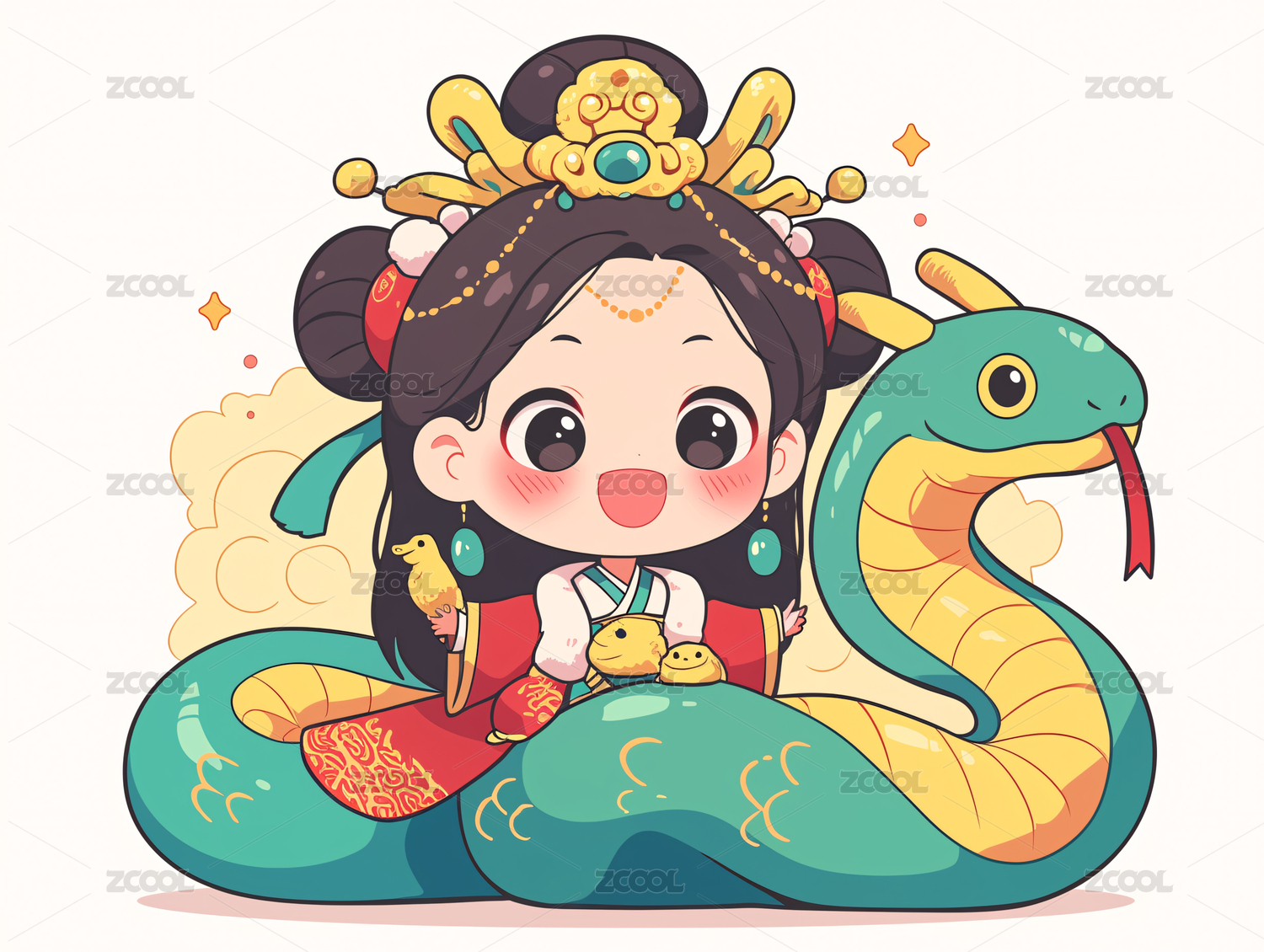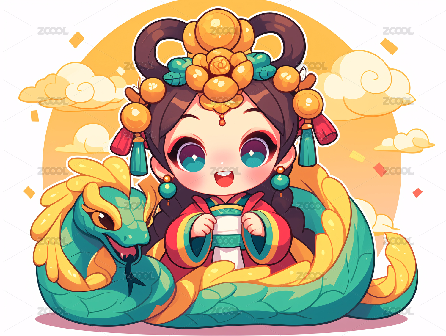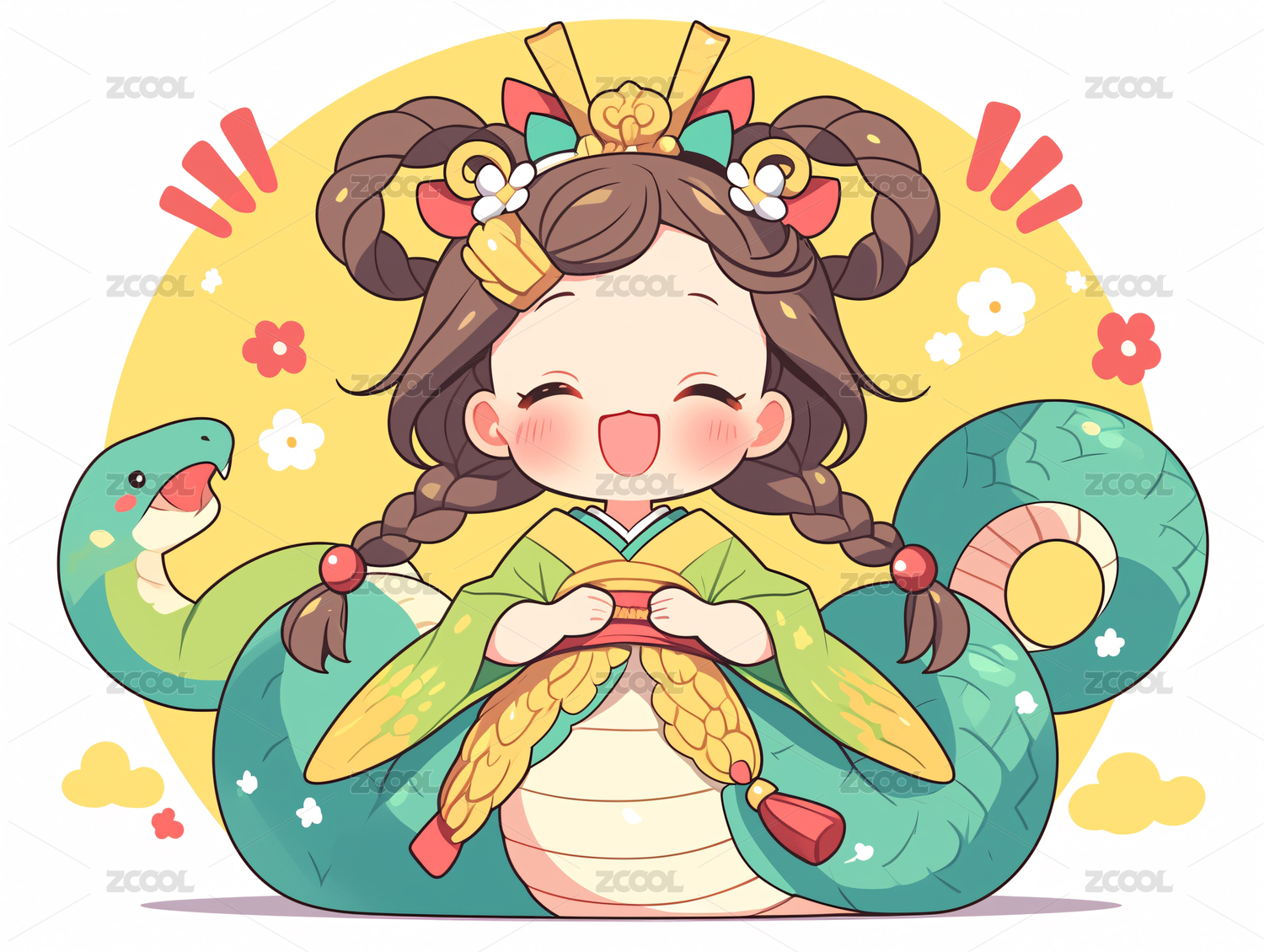 卡通图案蛇生肖元素