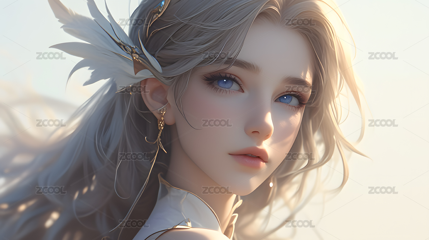 梦幻白发少女唯美侧颜