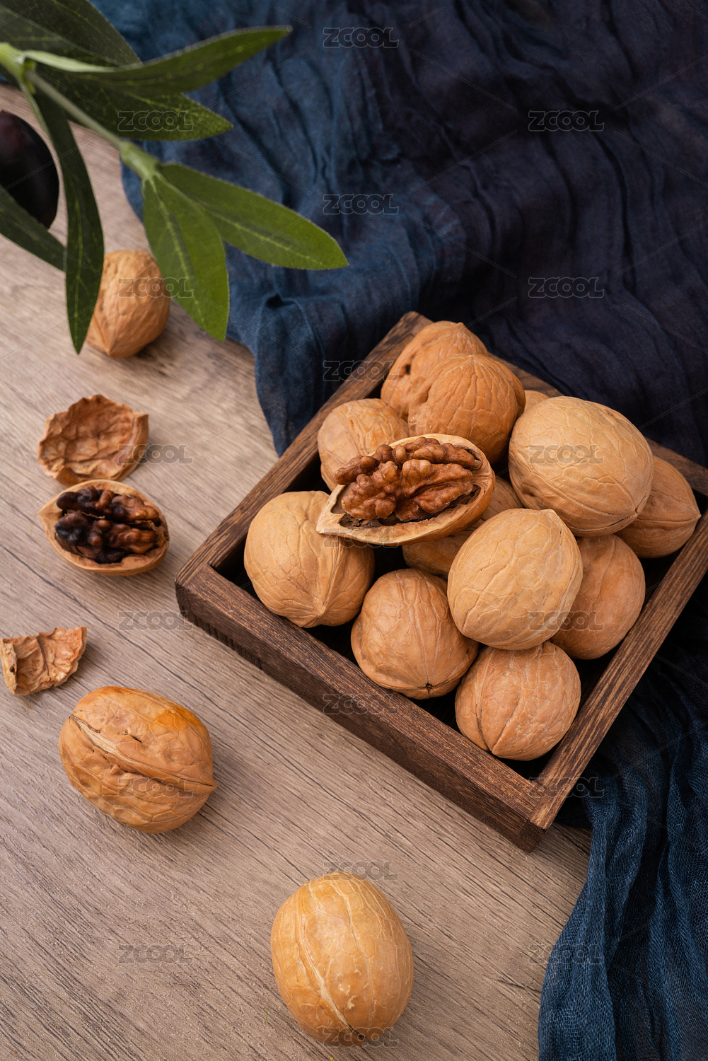 暗调木纹桌木盒里放着薄壳核桃