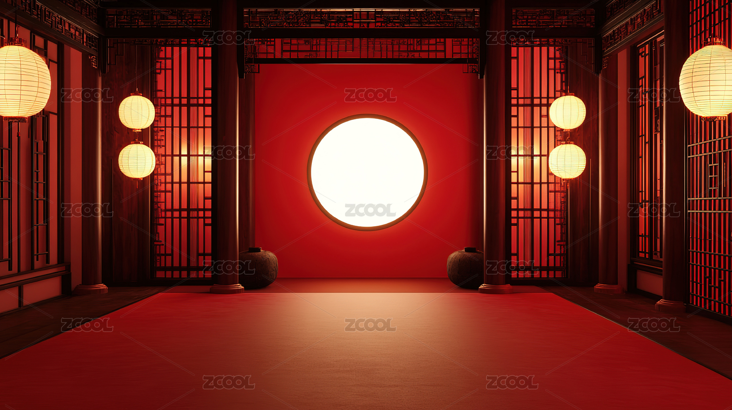 红色背景下的中式灯笼