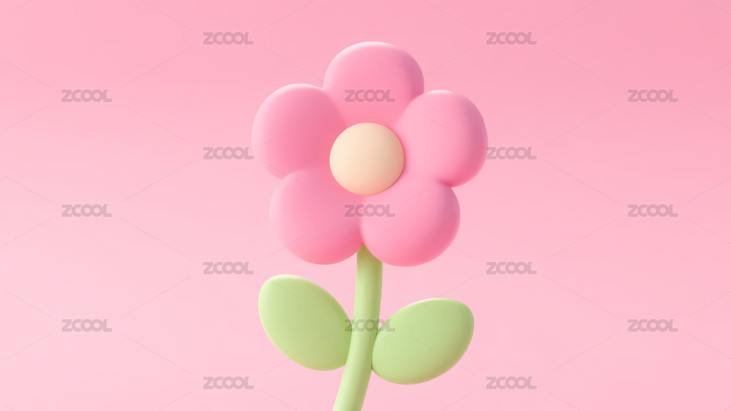 3D渲染,一朵小清新花朵,纯色背景,静物