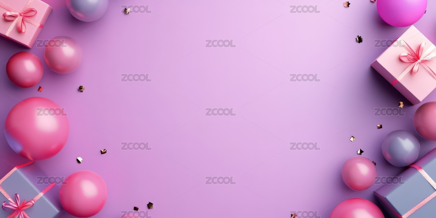 礼盒气球留白紫色背景