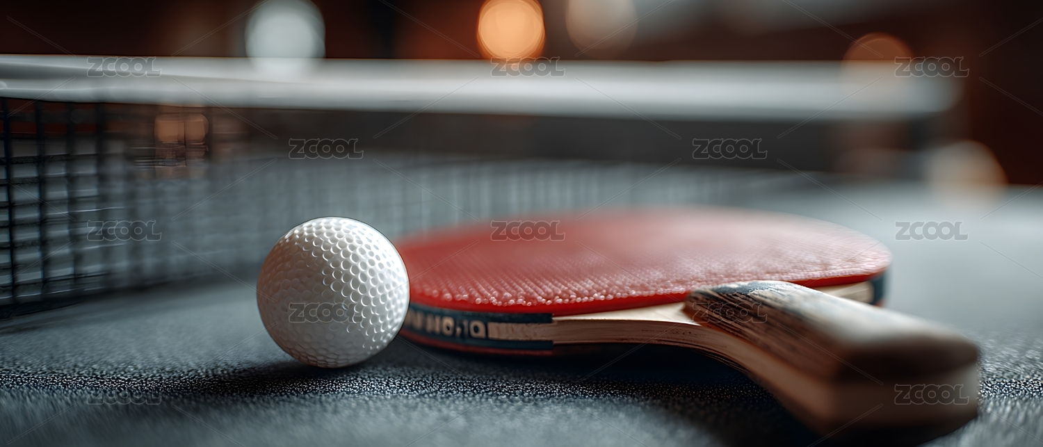 乒乓球拍和球在桌上 运动场景