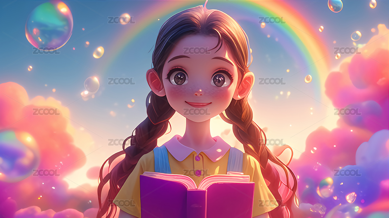 卡通,3D,学生,人物,背景,壁纸,底图,蓝天,云彩,气泡